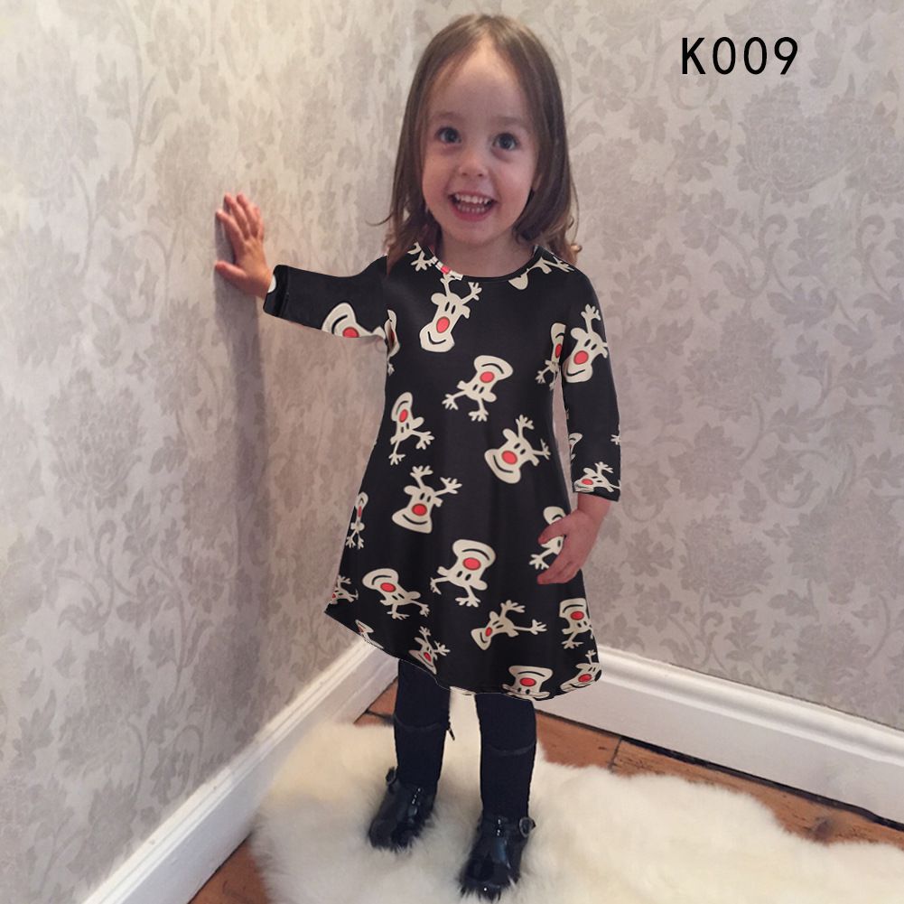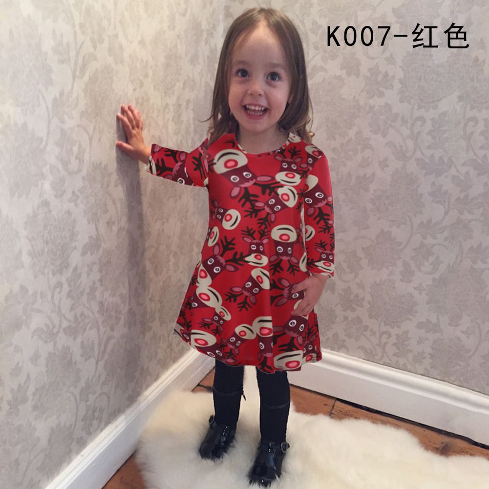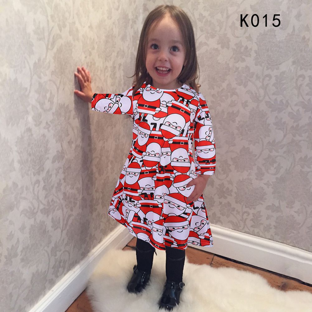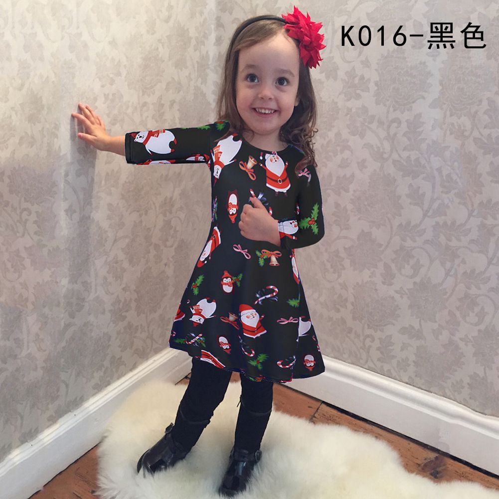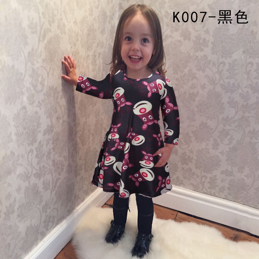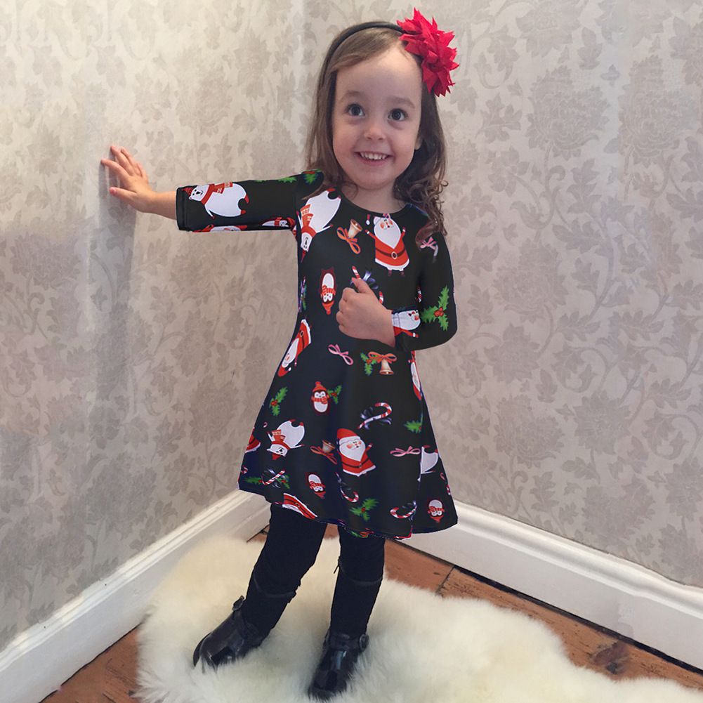 Christmas Skirt Girls Wear 2017 New Christmas Kids Skirt Cartoon Print Long Sleeve Dress