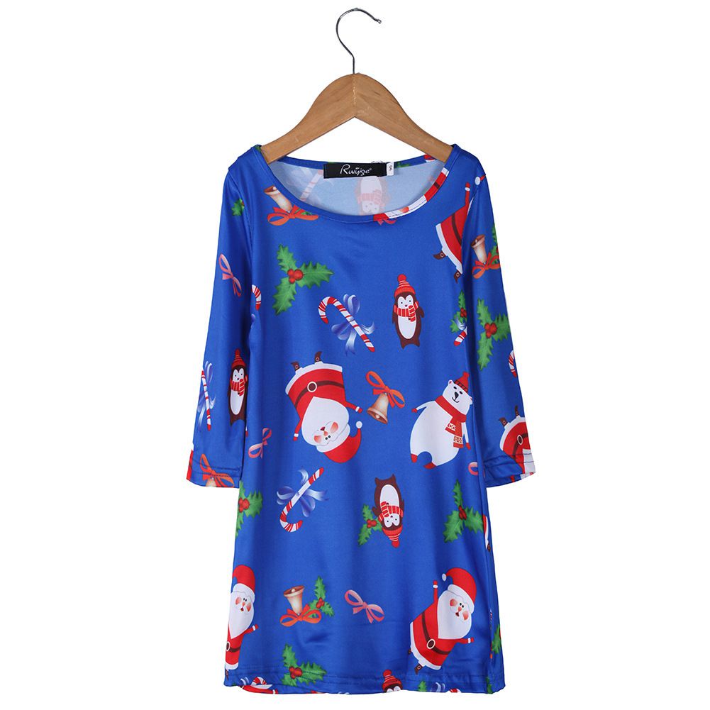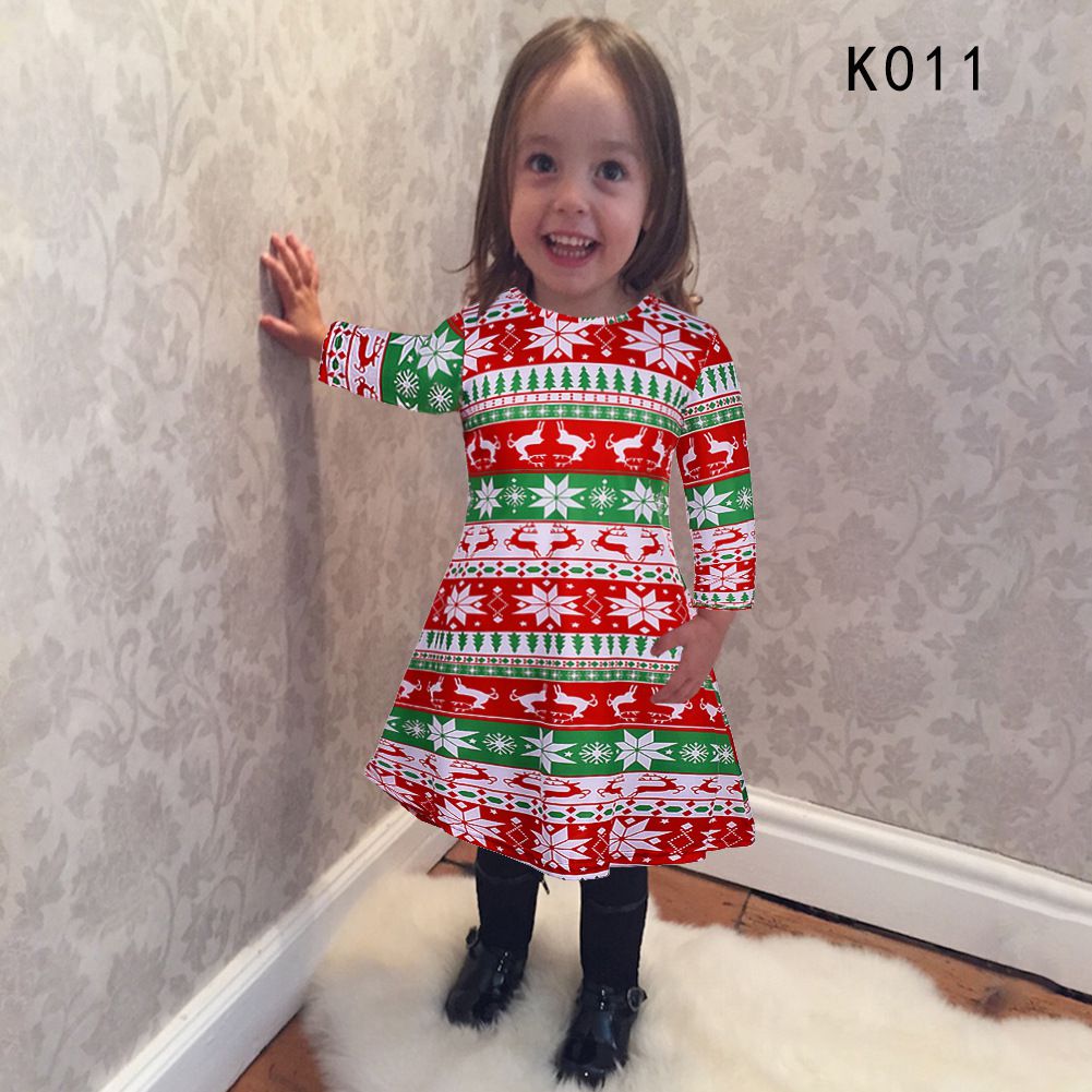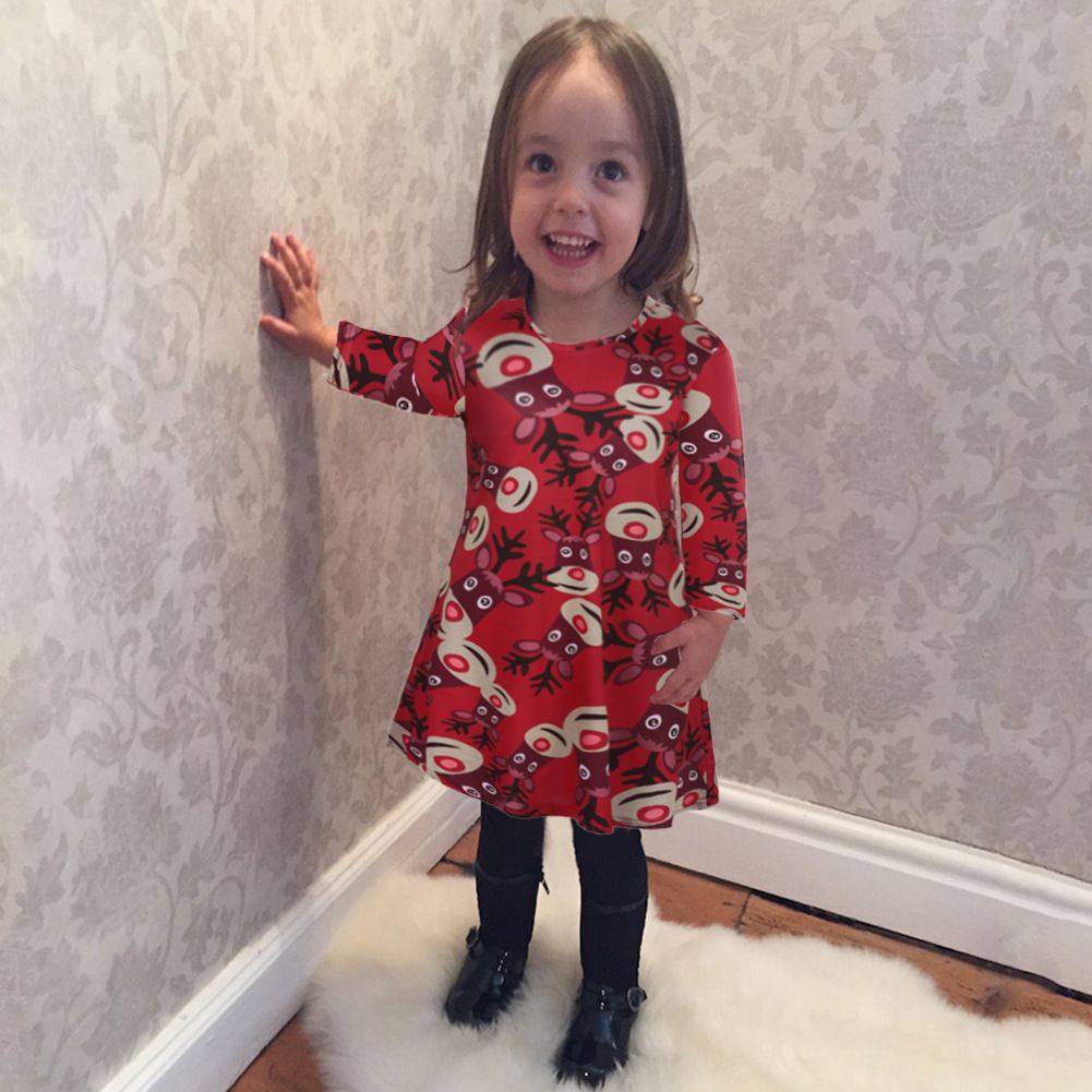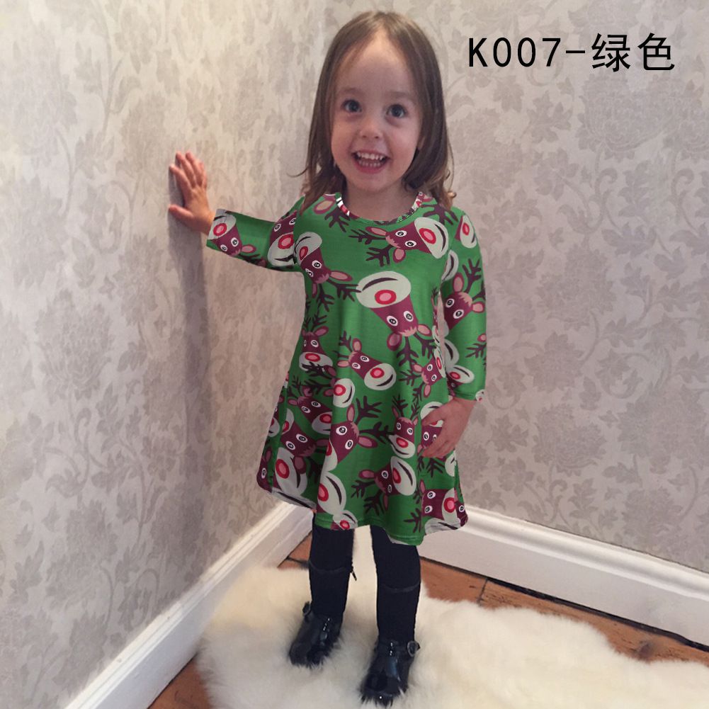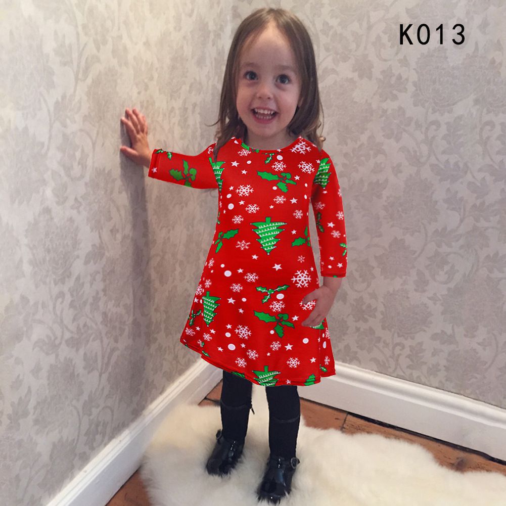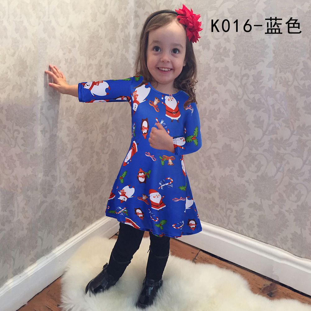 Christmas Skirt Girls Wear 2017 New Christmas Kids Skirt Cartoon Print Long Sleeve Dress