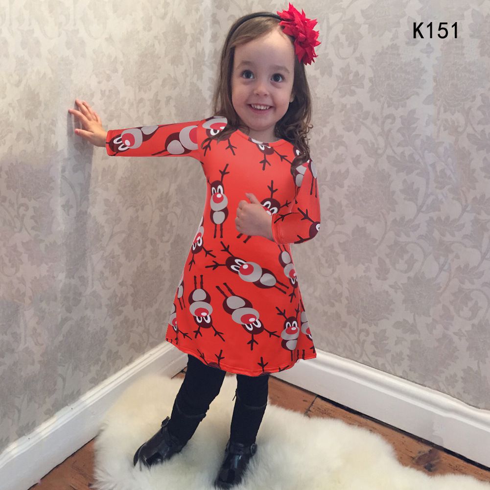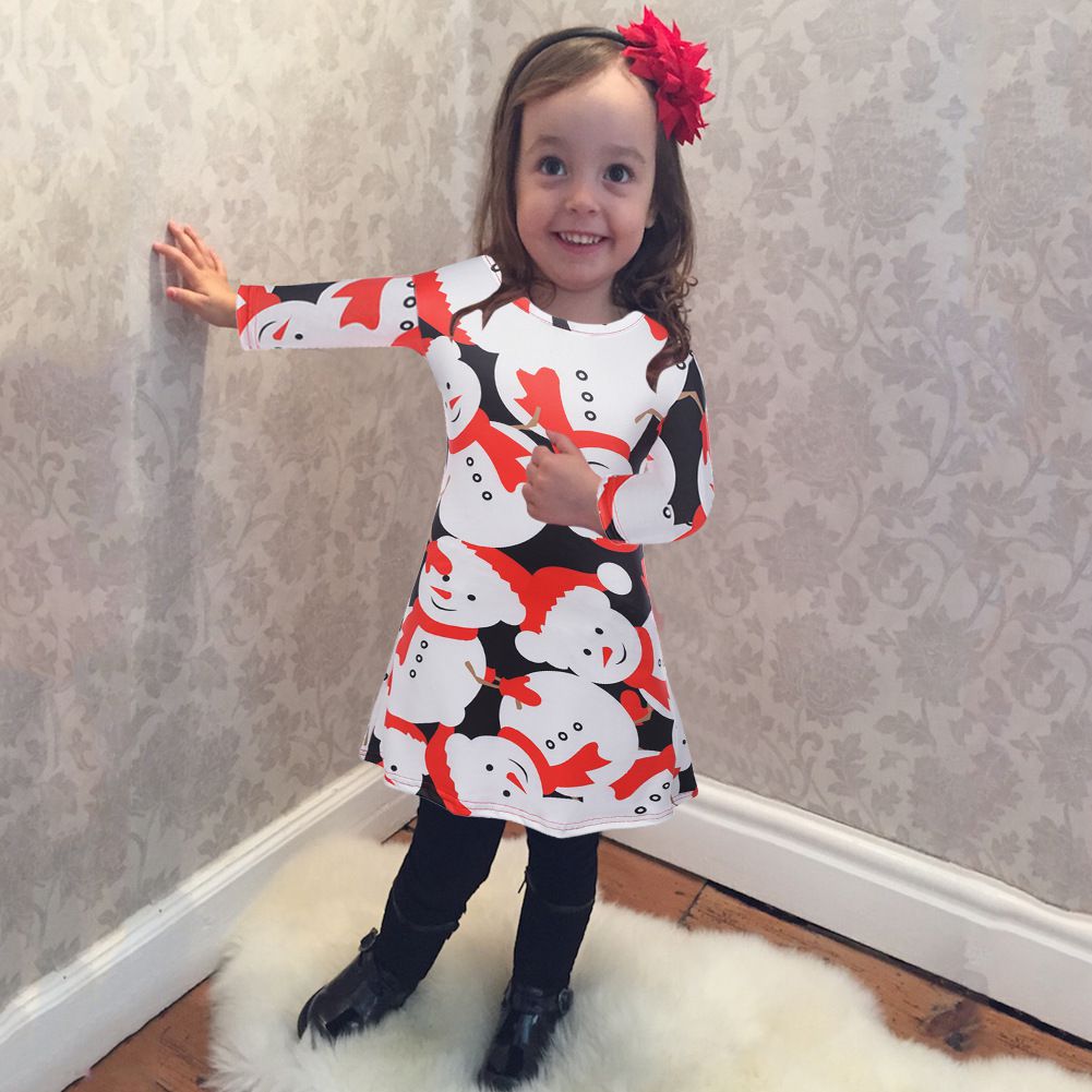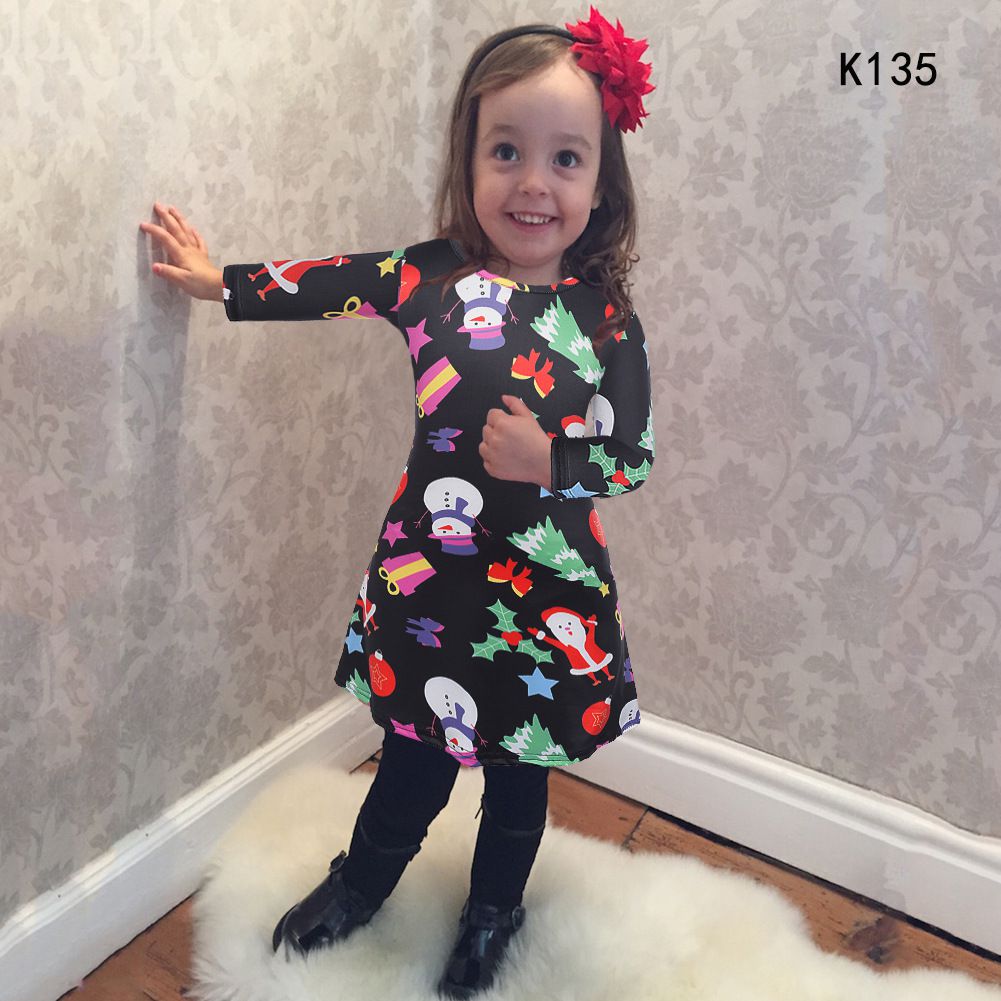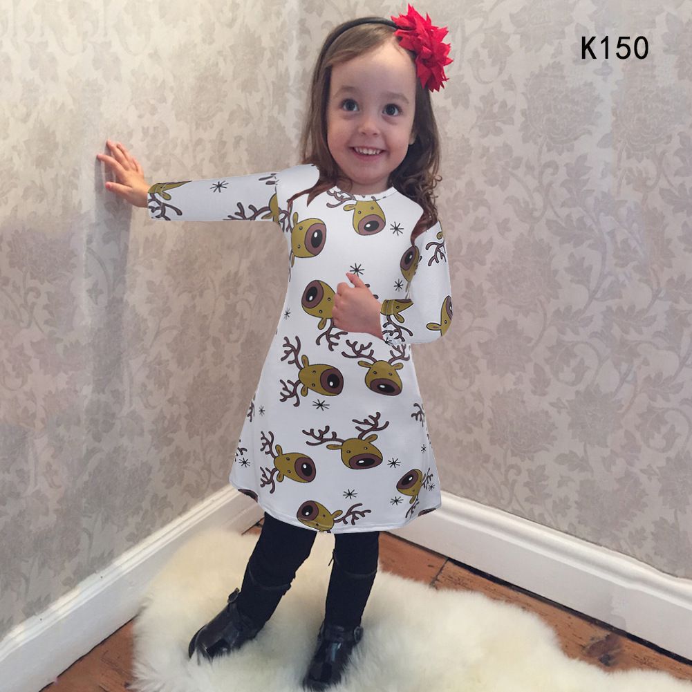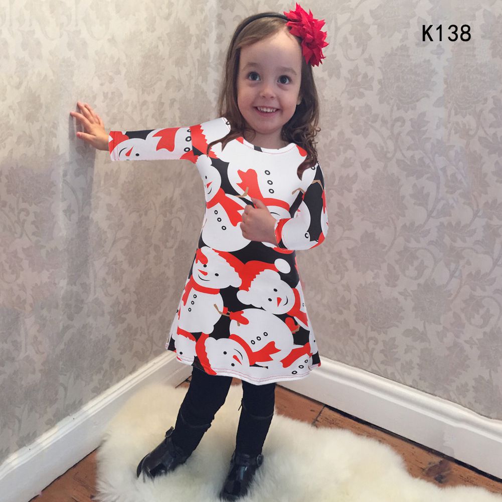 Christmas Skirt Girls Wear 2017 New Christmas Kids Skirt Cartoon Print Long Sleeve Dress