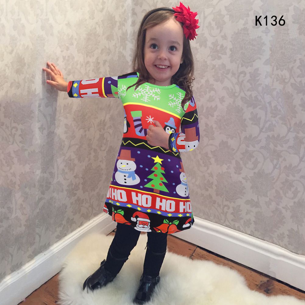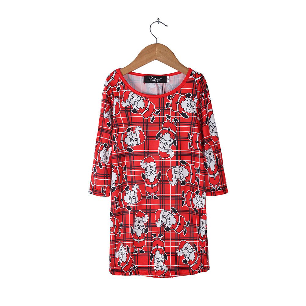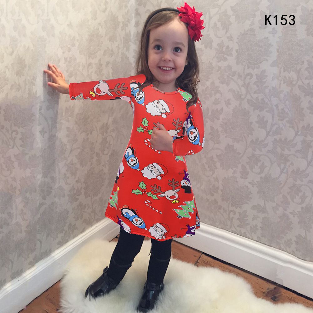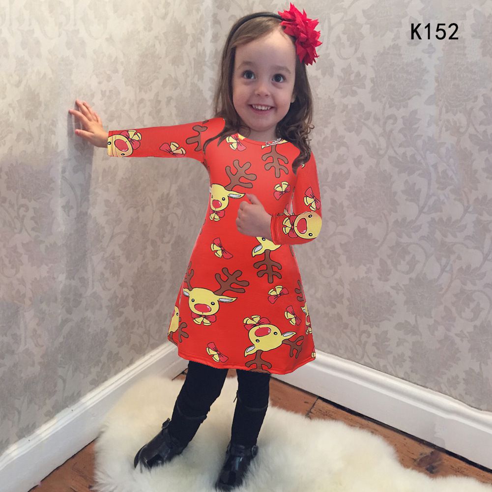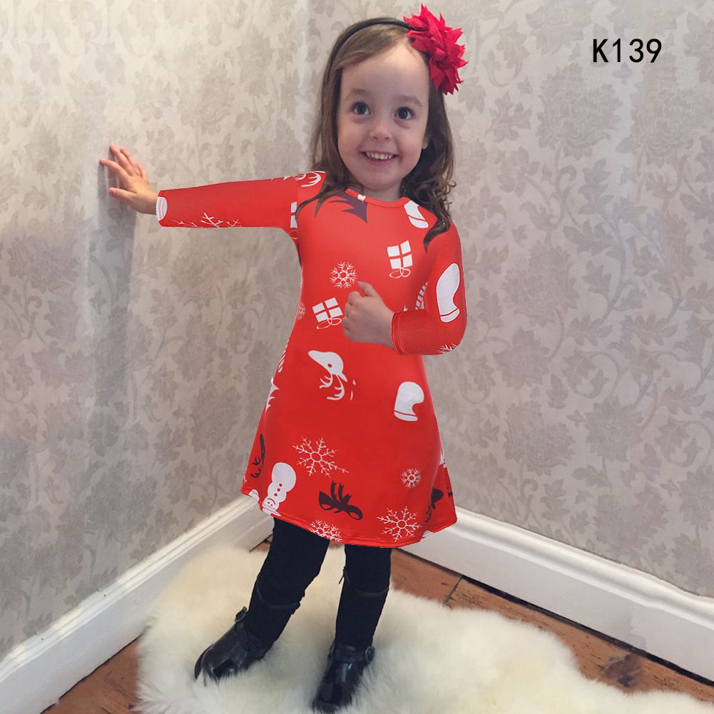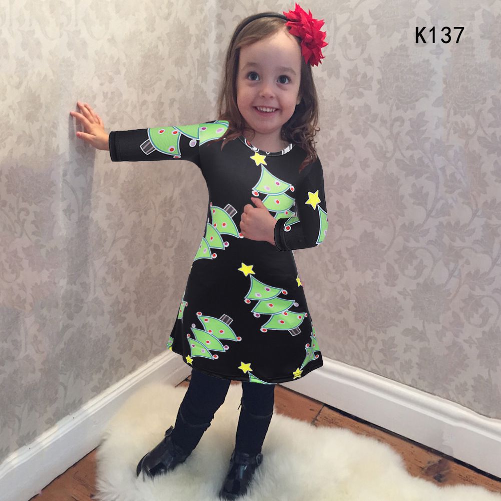 Christmas Skirt Girls Wear 2017 New Christmas Kids Skirt Cartoon Print Long Sleeve Dress