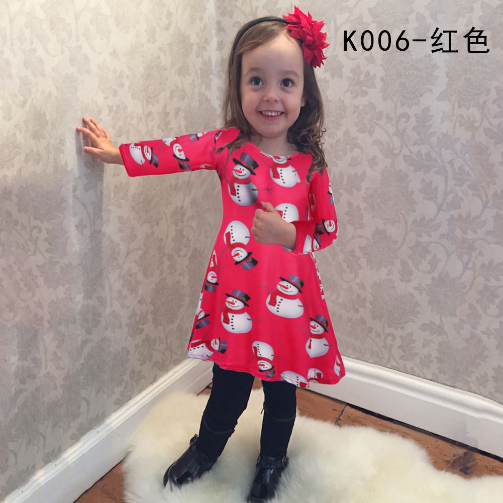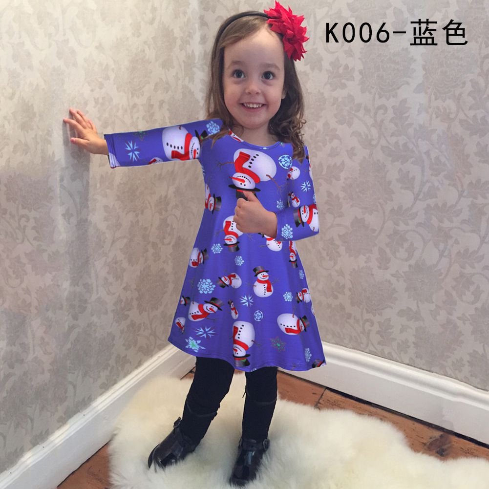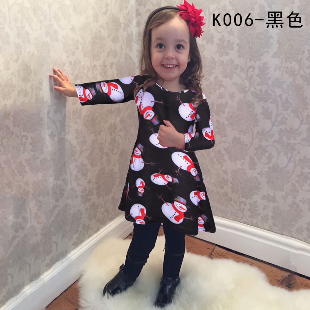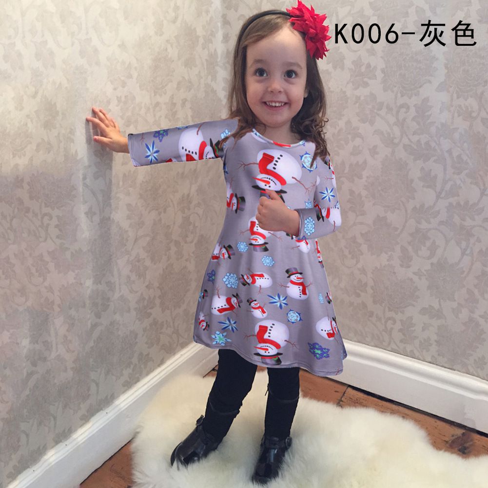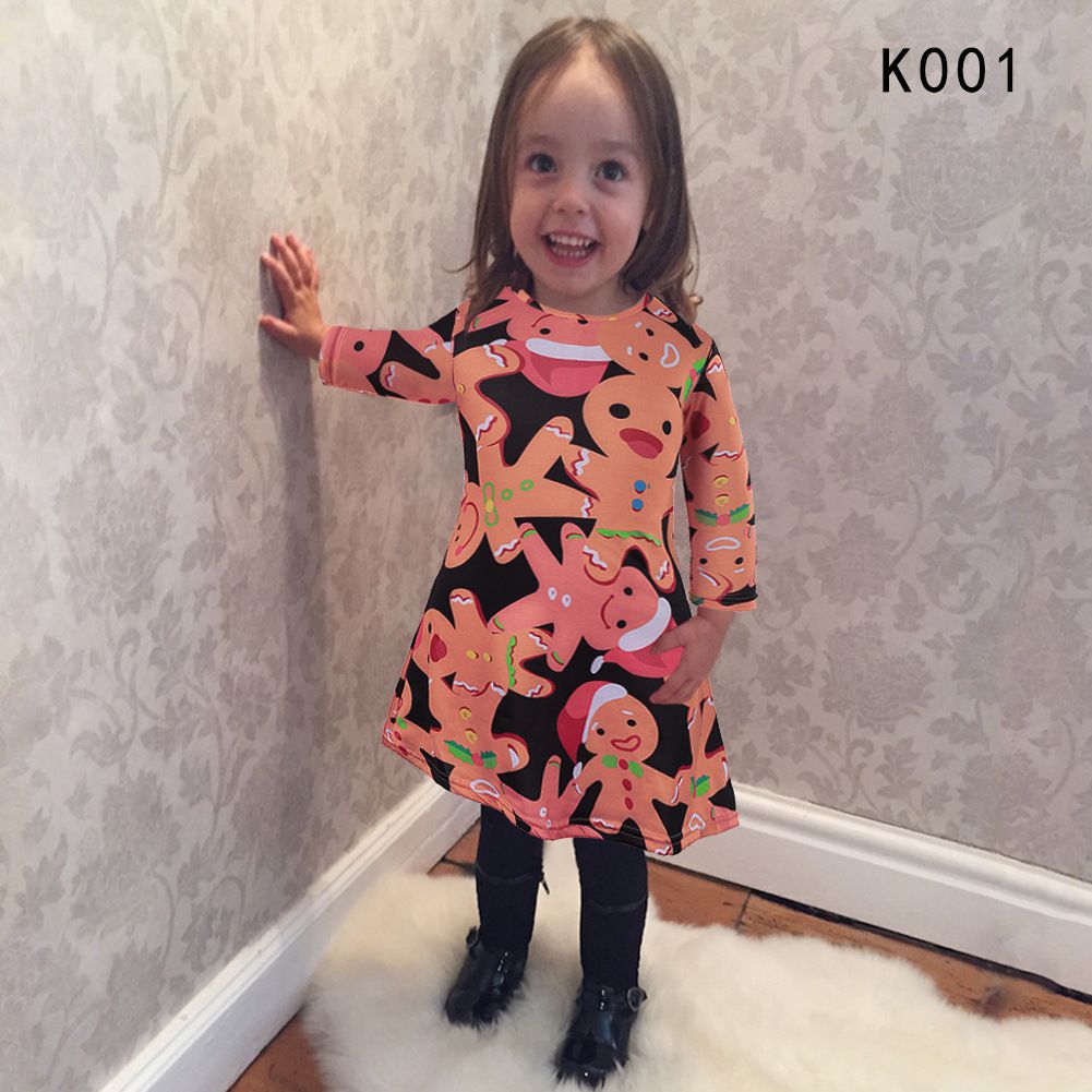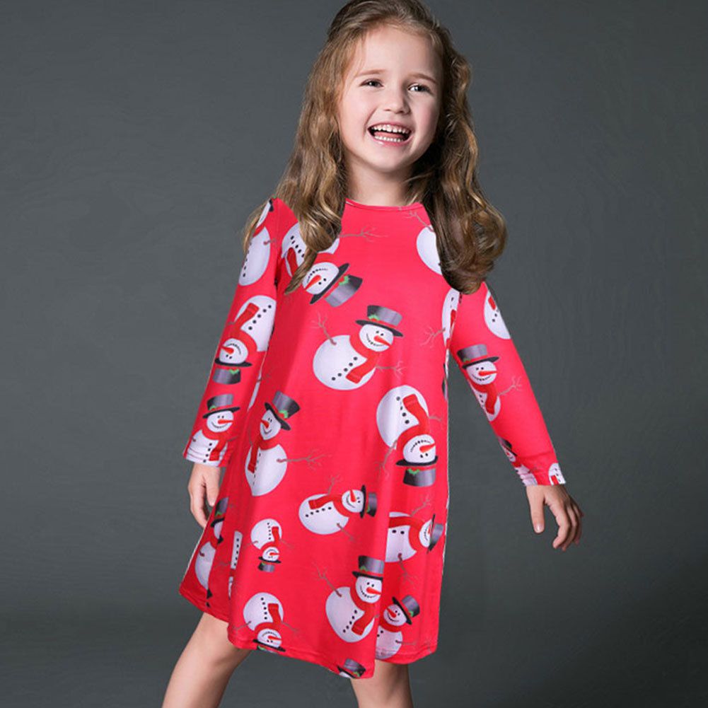 Christmas Skirt Girls Wear 2017 New Christmas Kids Skirt Cartoon Print Long Sleeve Dress