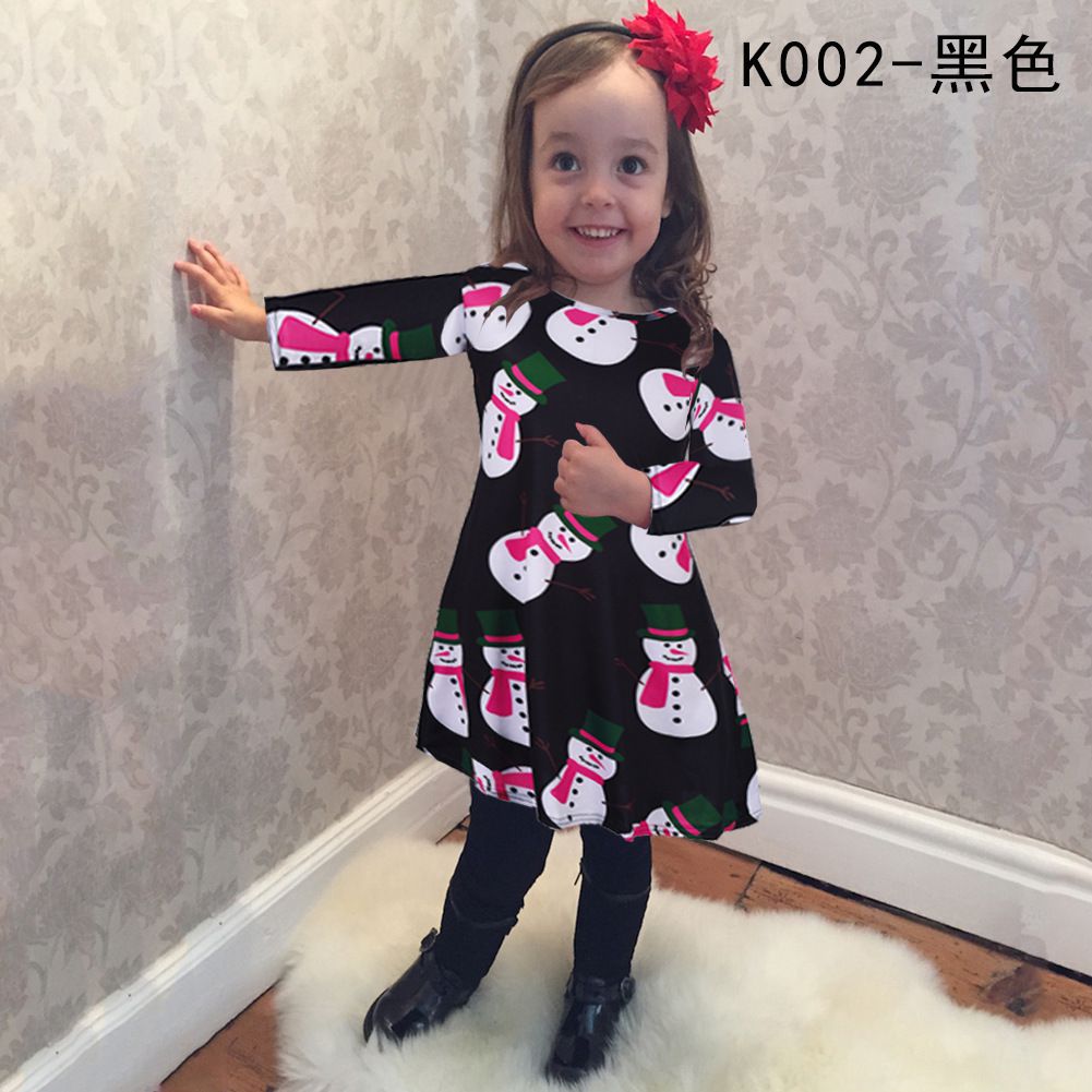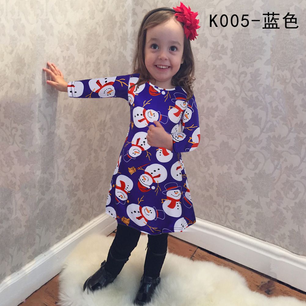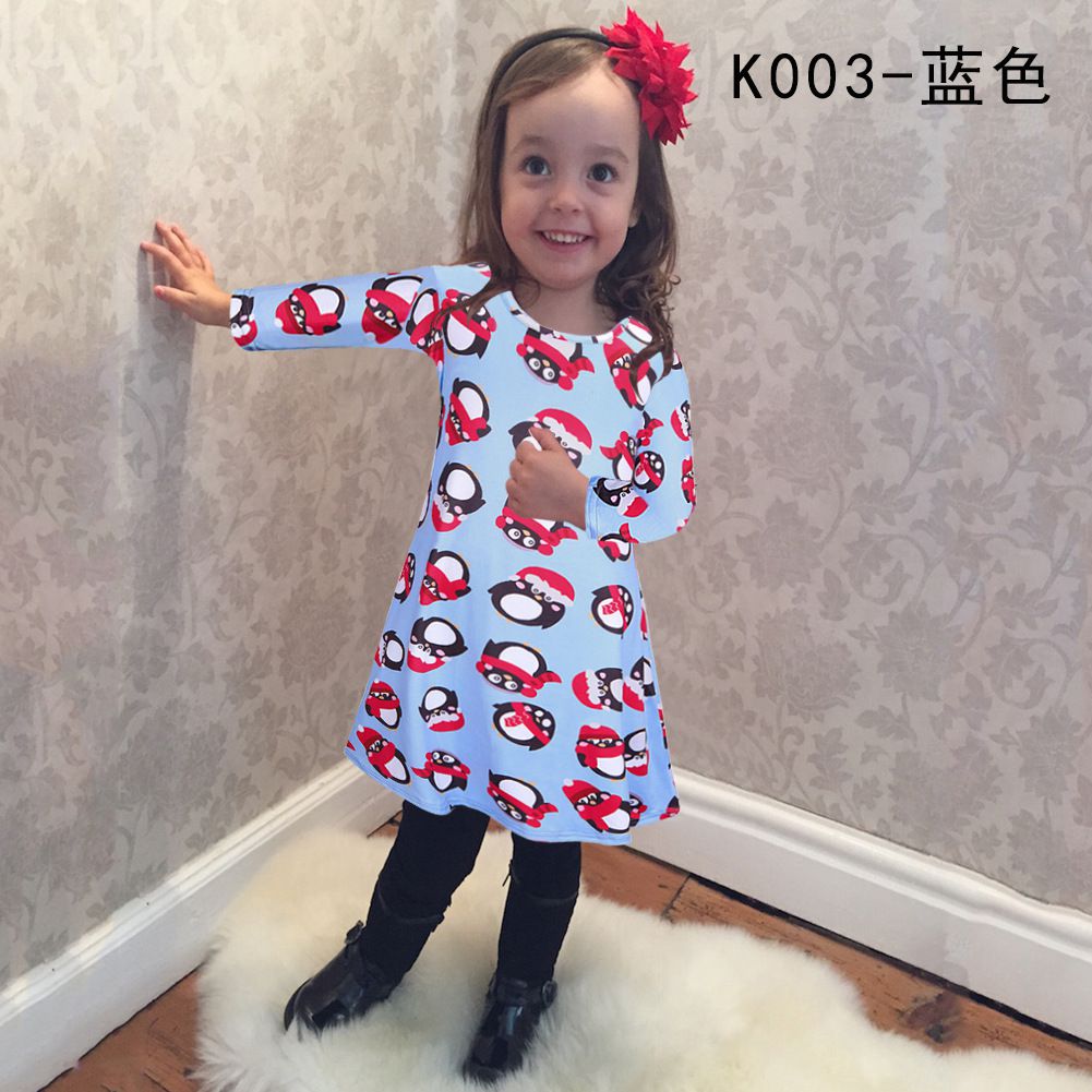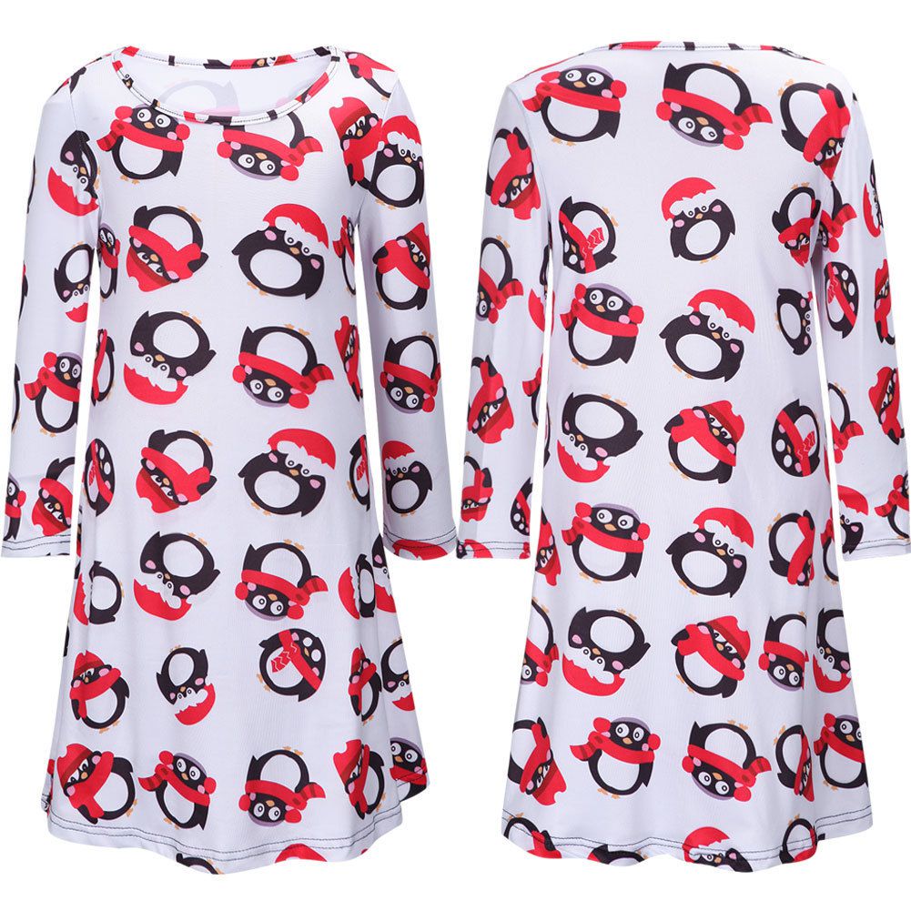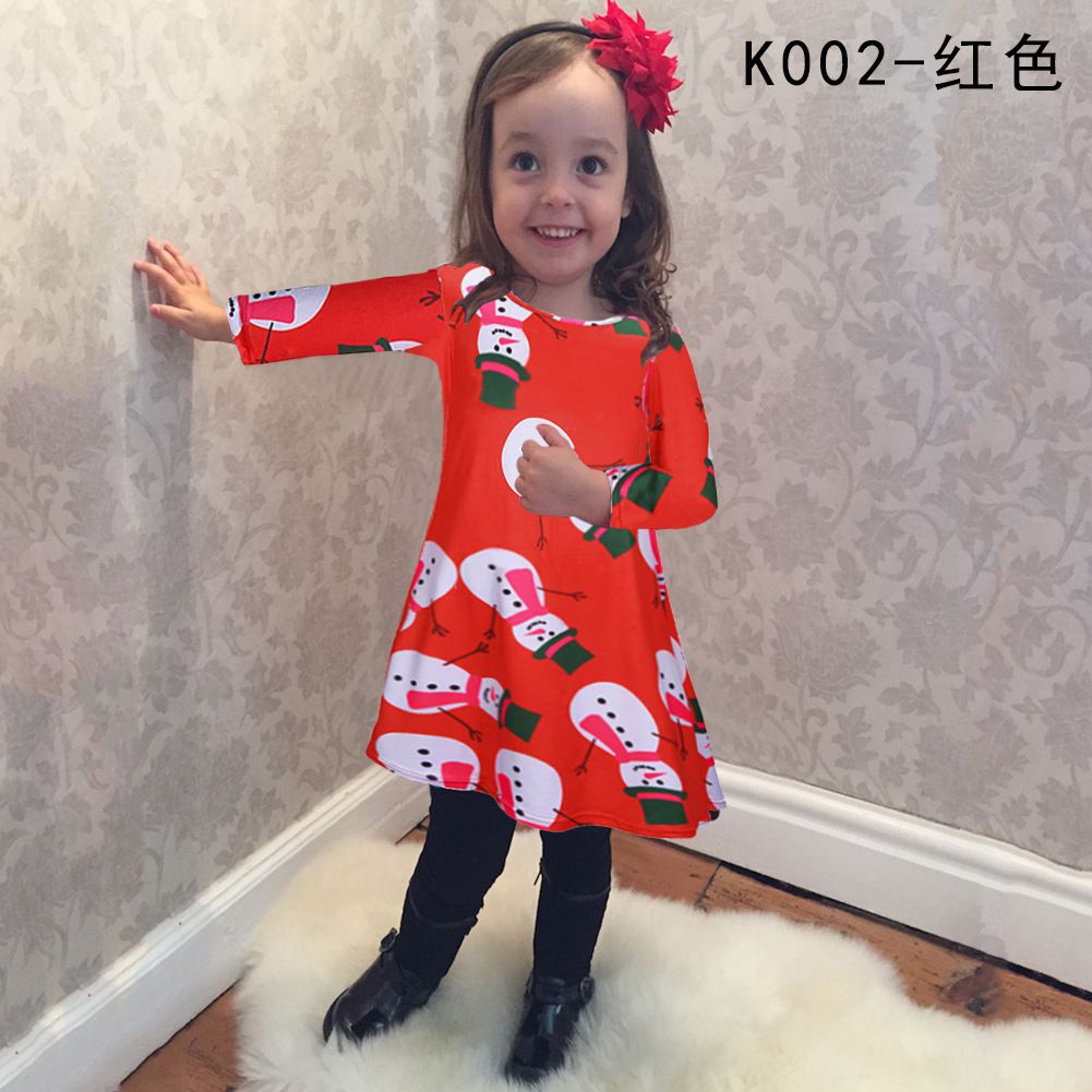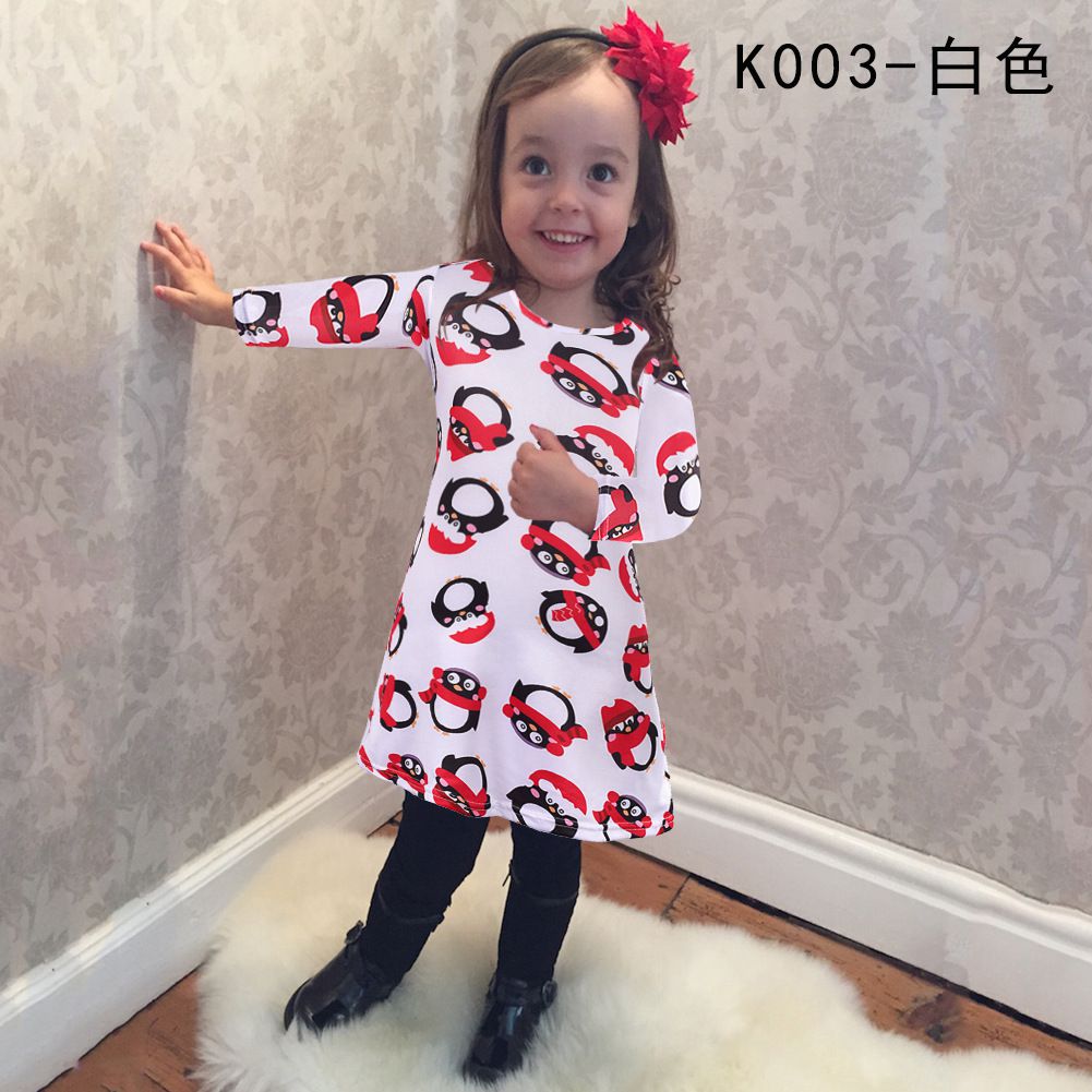 Christmas Skirt Girls Wear 2017 New Christmas Kids Skirt Cartoon Print Long Sleeve Dress