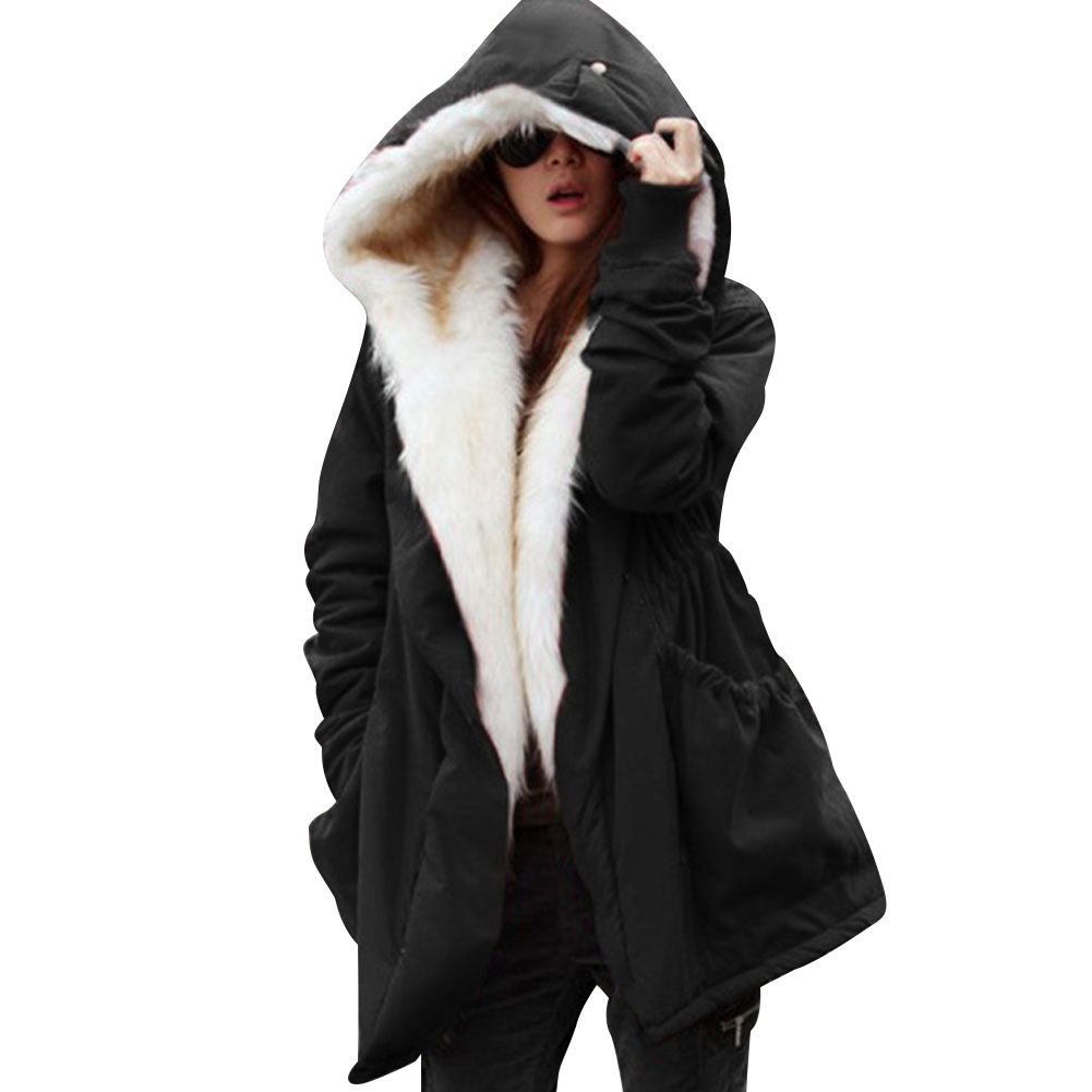 Slim-fit warm jacket long fur collar hooded coat cotton coat military coat