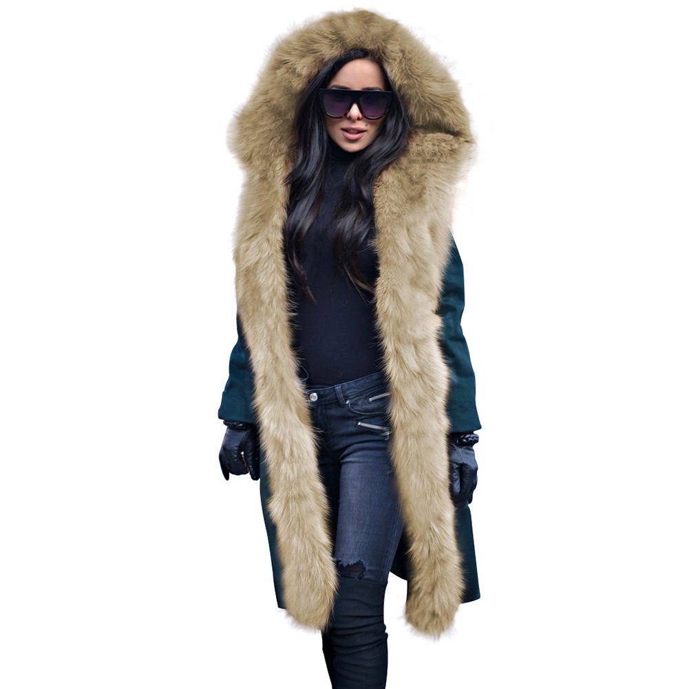 Slim-fit warm jacket long fur collar hooded coat cotton coat military coat