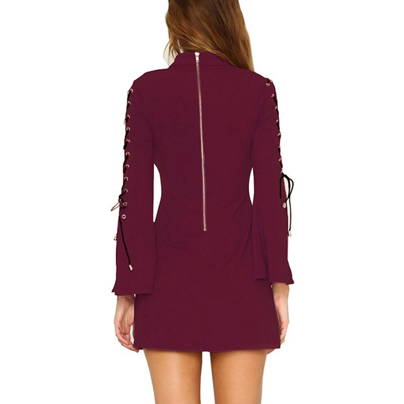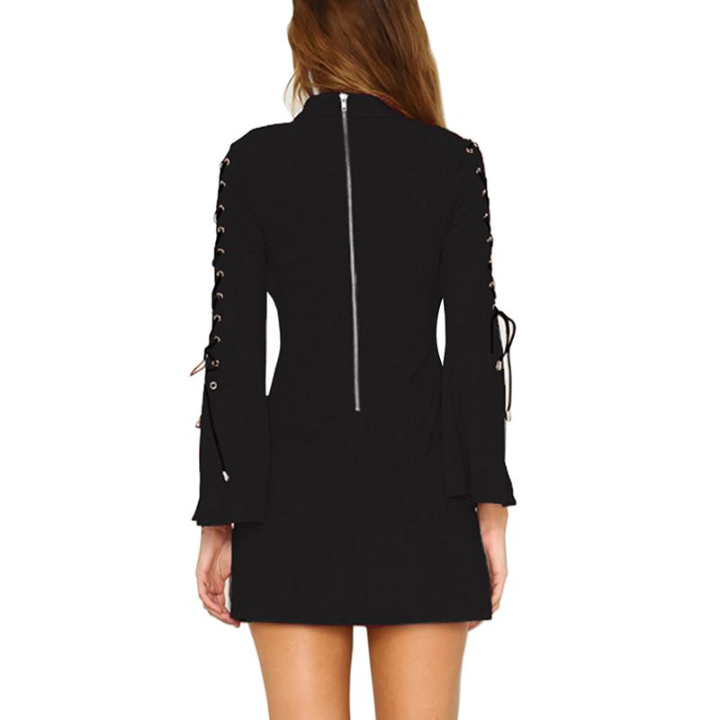 2025 autumn and winter new solid color lace dress trumpet sleeves hip skirt