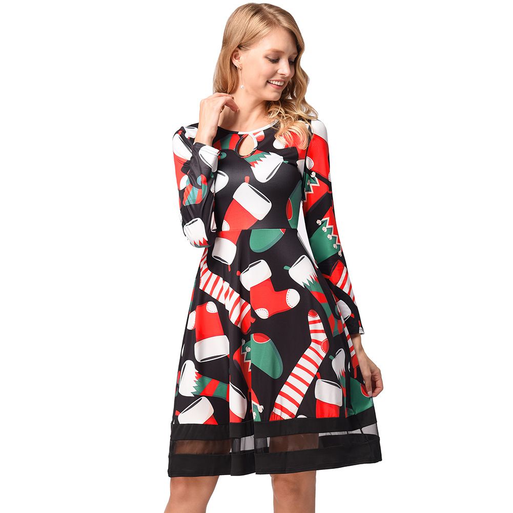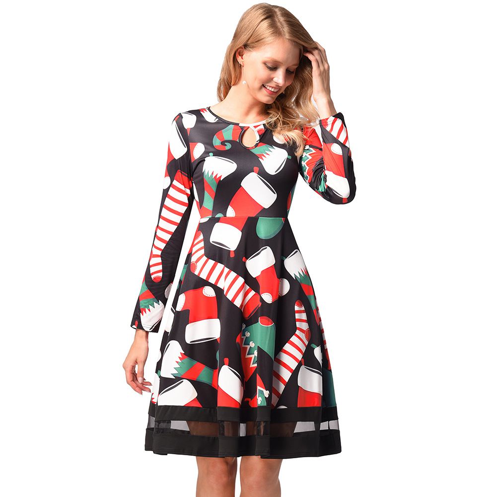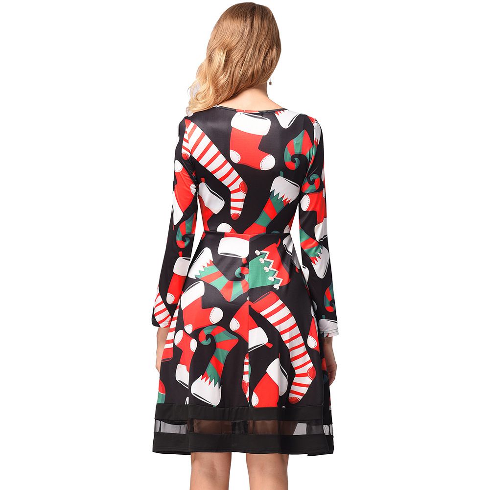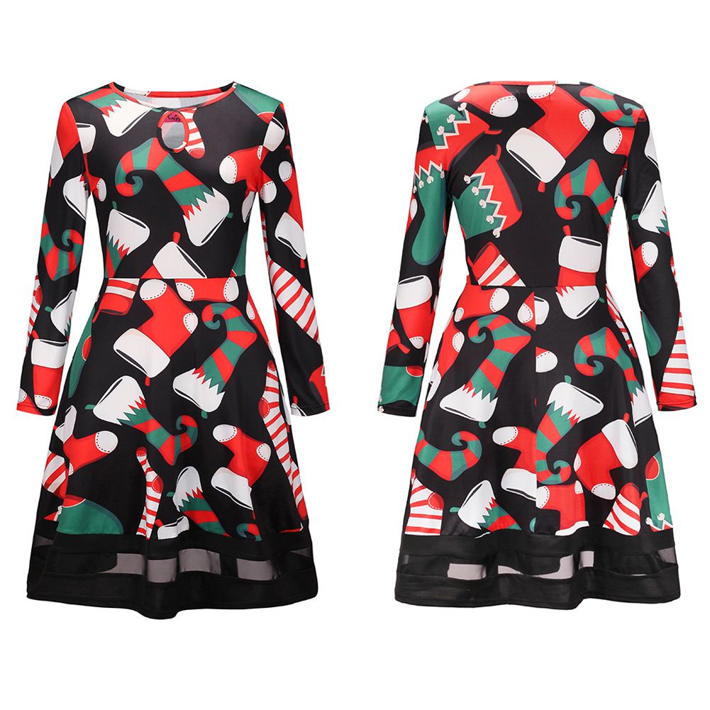 2025 Christmas Christmas Spot Cartoon Print Mesh Dress Autumn and Winter
