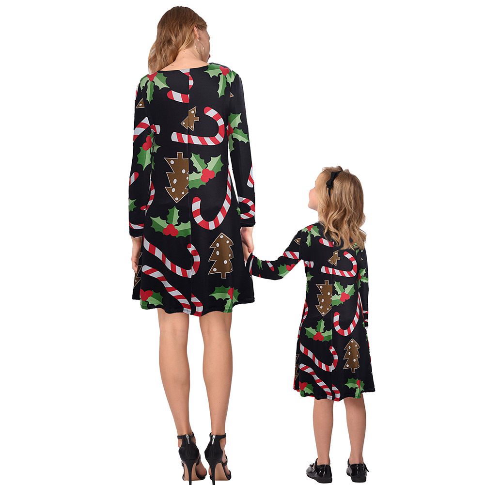 2025 new snowflake Christmas stocking print long-sleeved dress Christmas parent-child dress