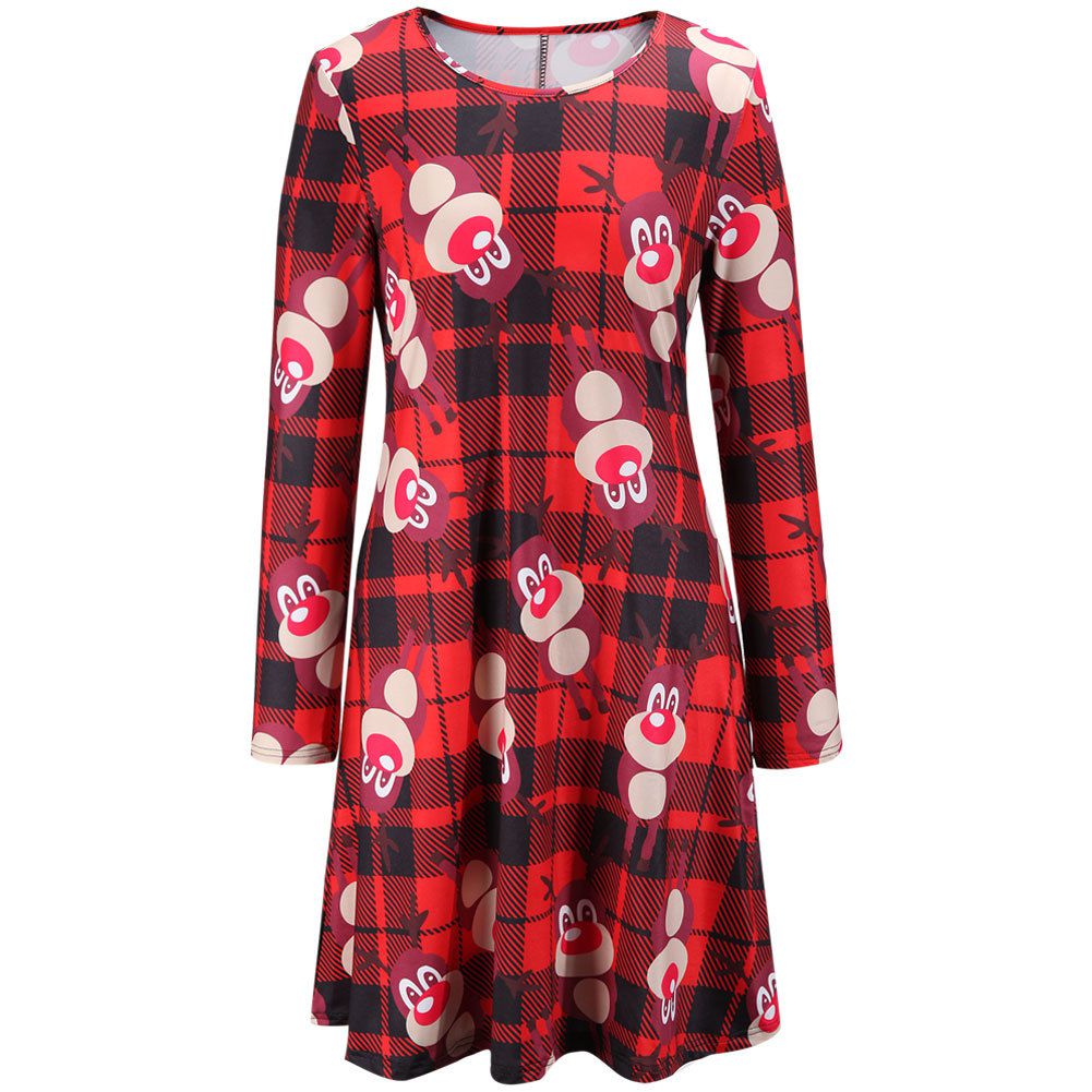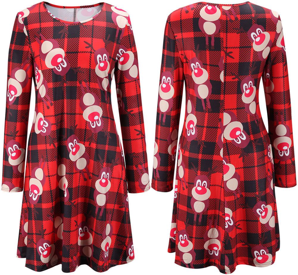 2025 Christmas Costume Christmas Print Skirt Long Sleeve Cartoon Dress Wholesale