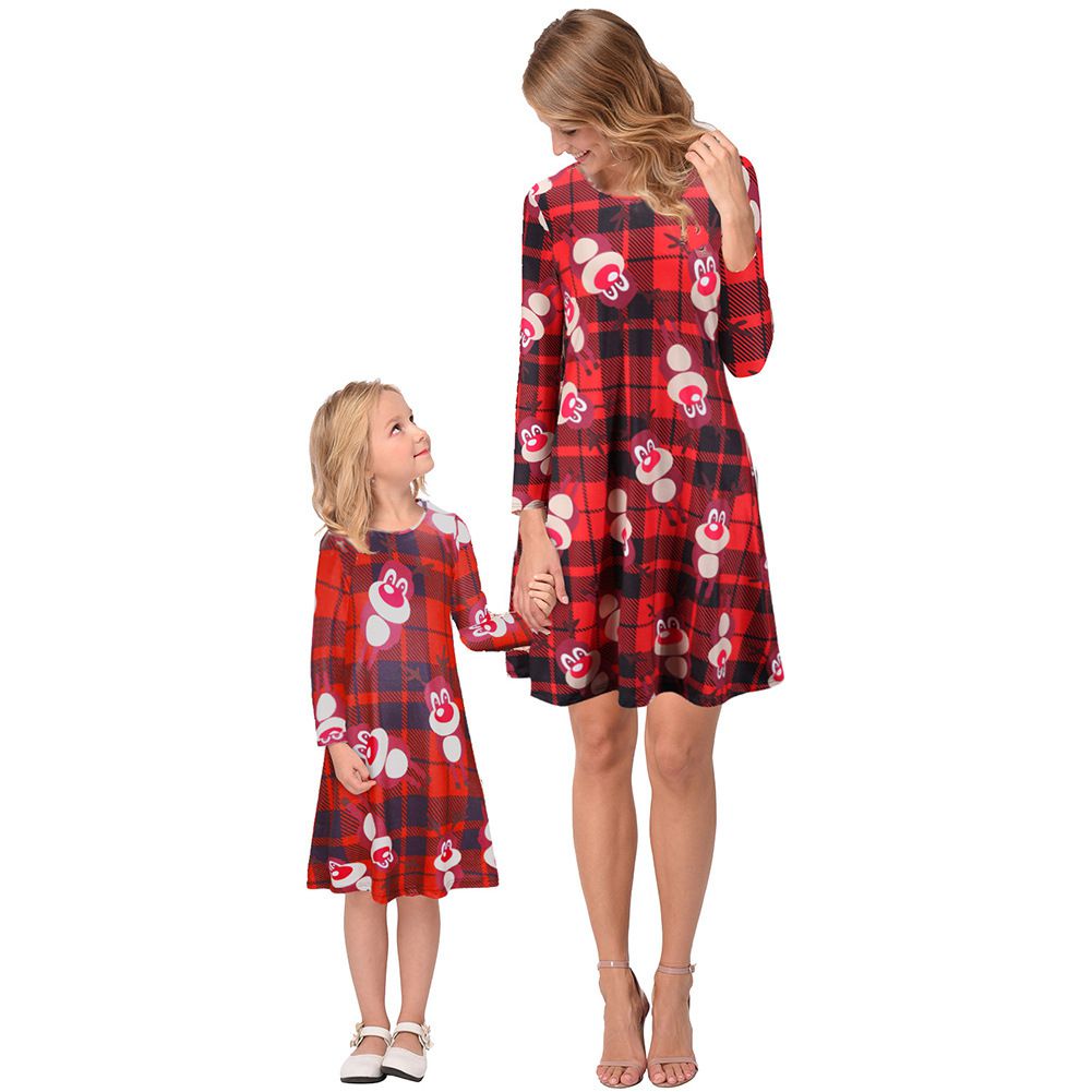 2025 hot lucky star ice snowball Christmas print dress parent-child skirt