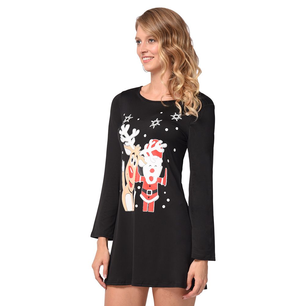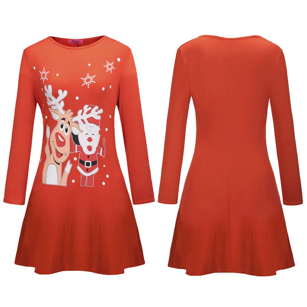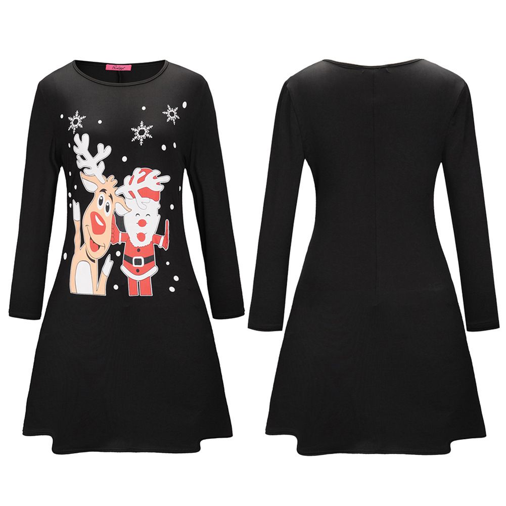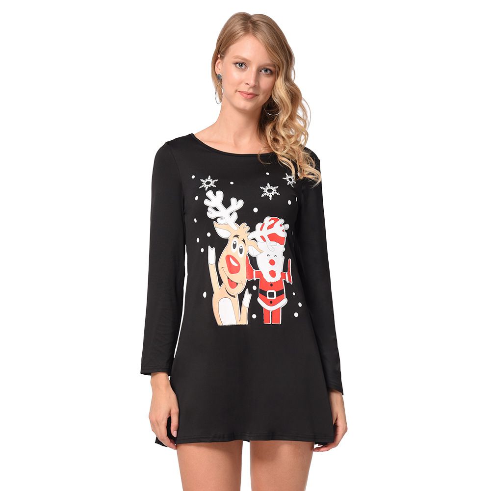 2025 new Christmas dress Snowman Elk Print Skirt Female Autumn Winter Christmas Costume