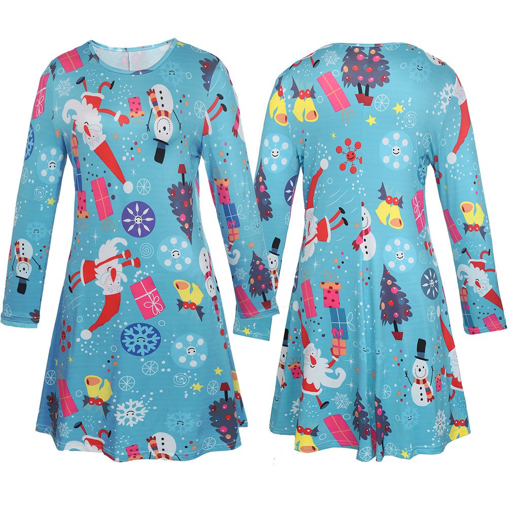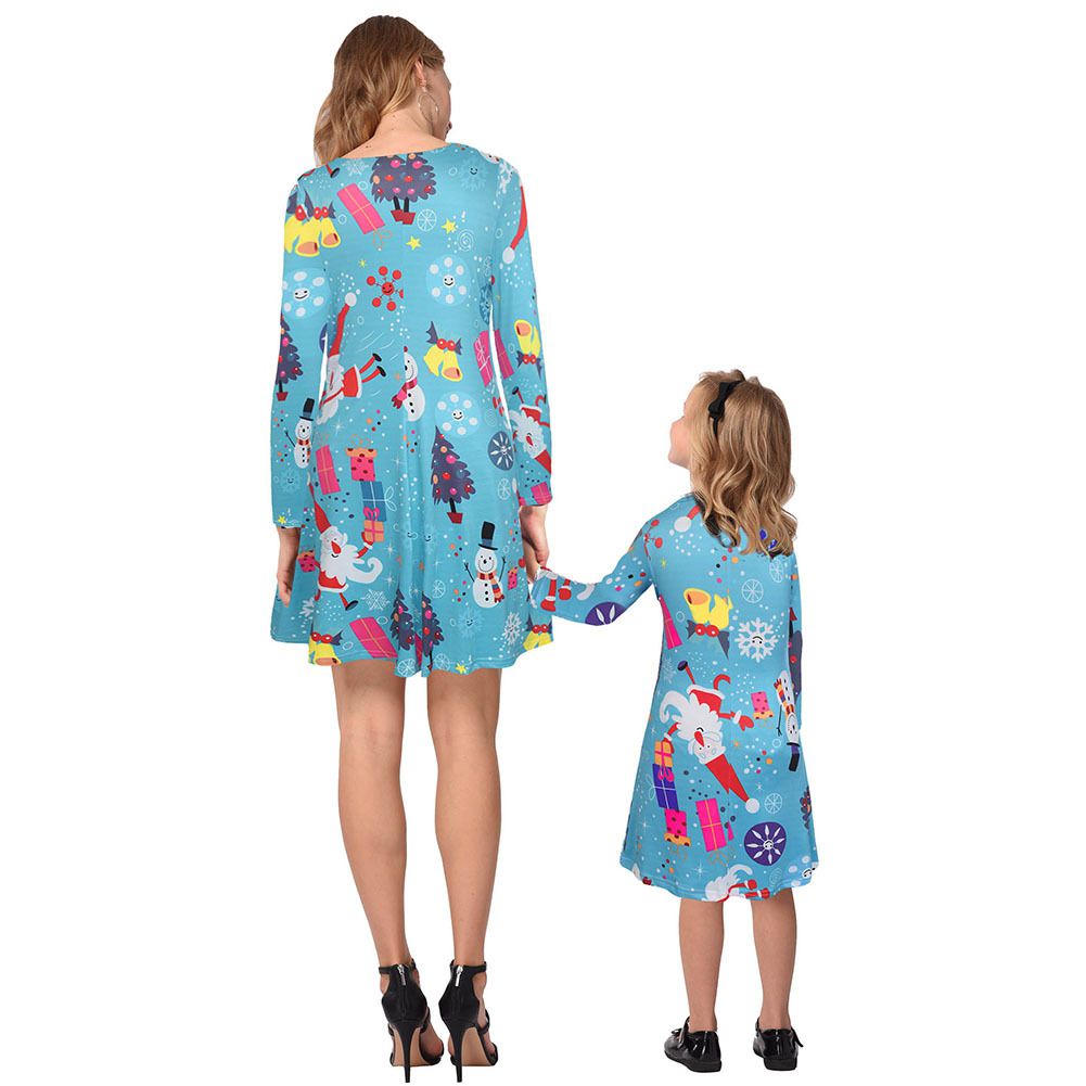 2025 new snowflake Christmas stocking print long-sleeved dress Christmas parent-child dress
