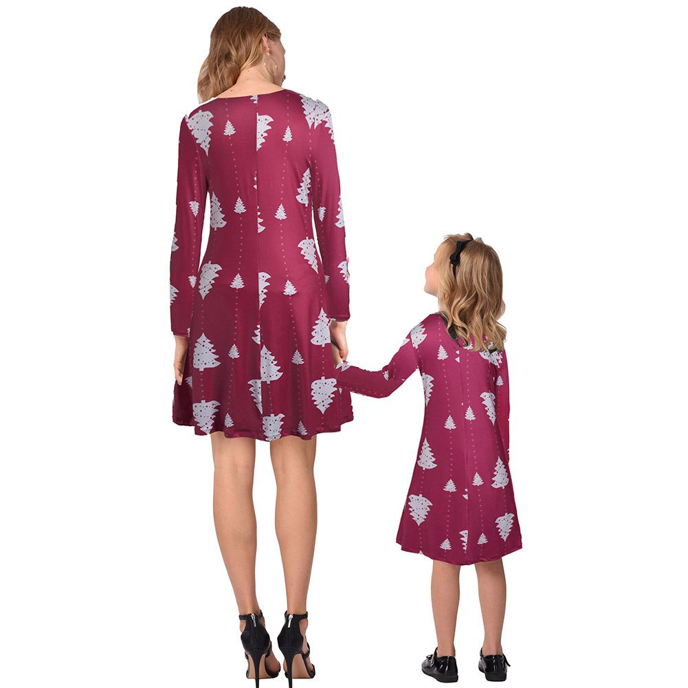 2025 new snowflake Christmas stocking print long-sleeved dress Christmas parent-child dress