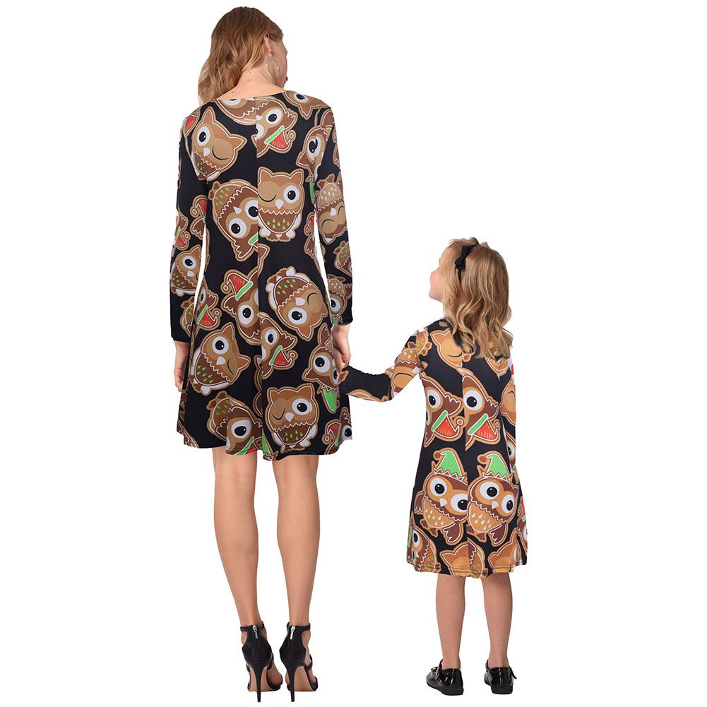 2025 new snowflake Christmas stocking print long-sleeved dress Christmas parent-child dress