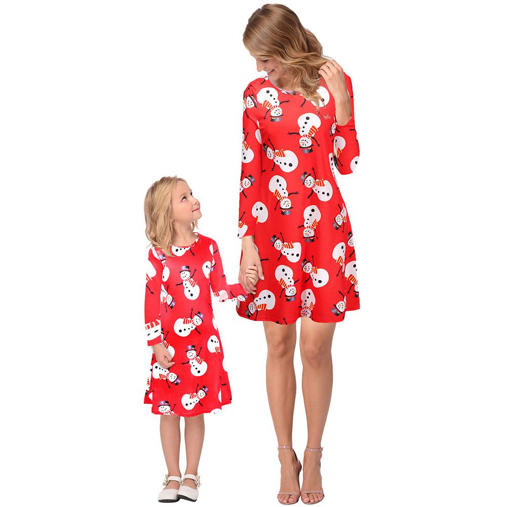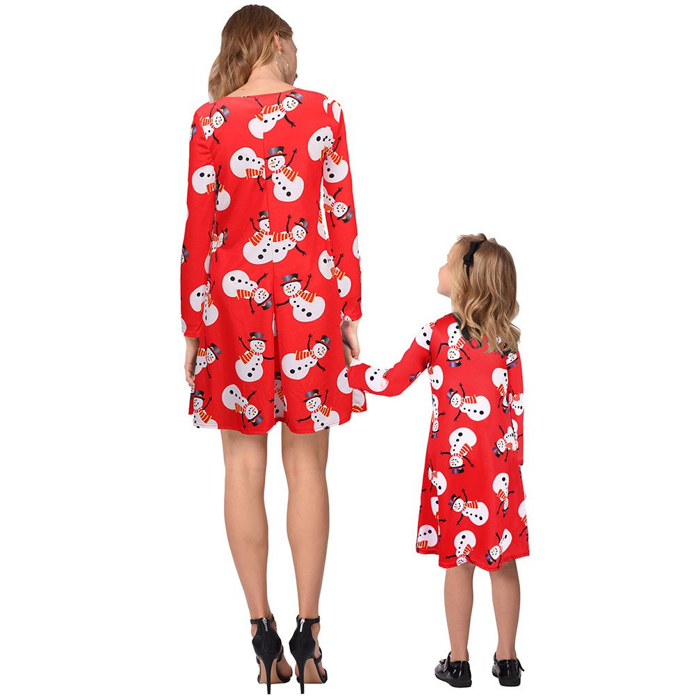 2025 new snowflake Christmas stocking print long-sleeved dress Christmas parent-child dress