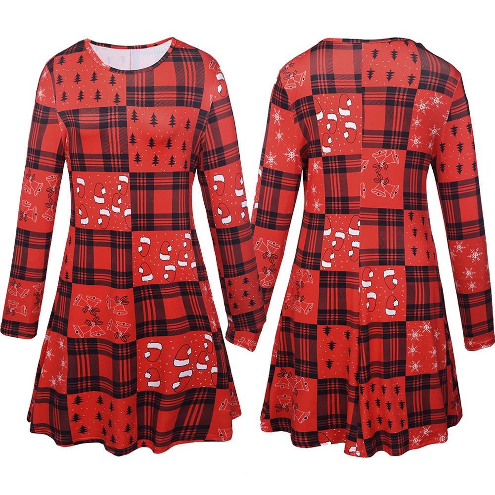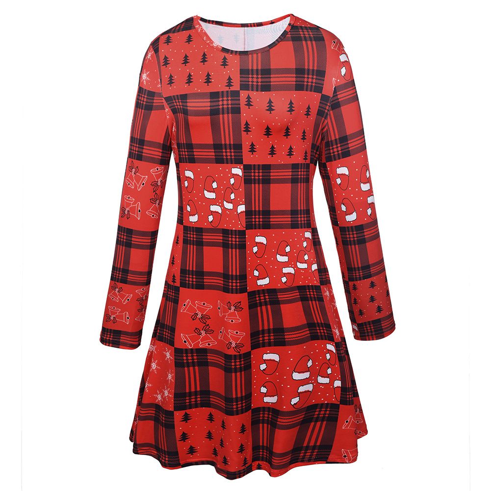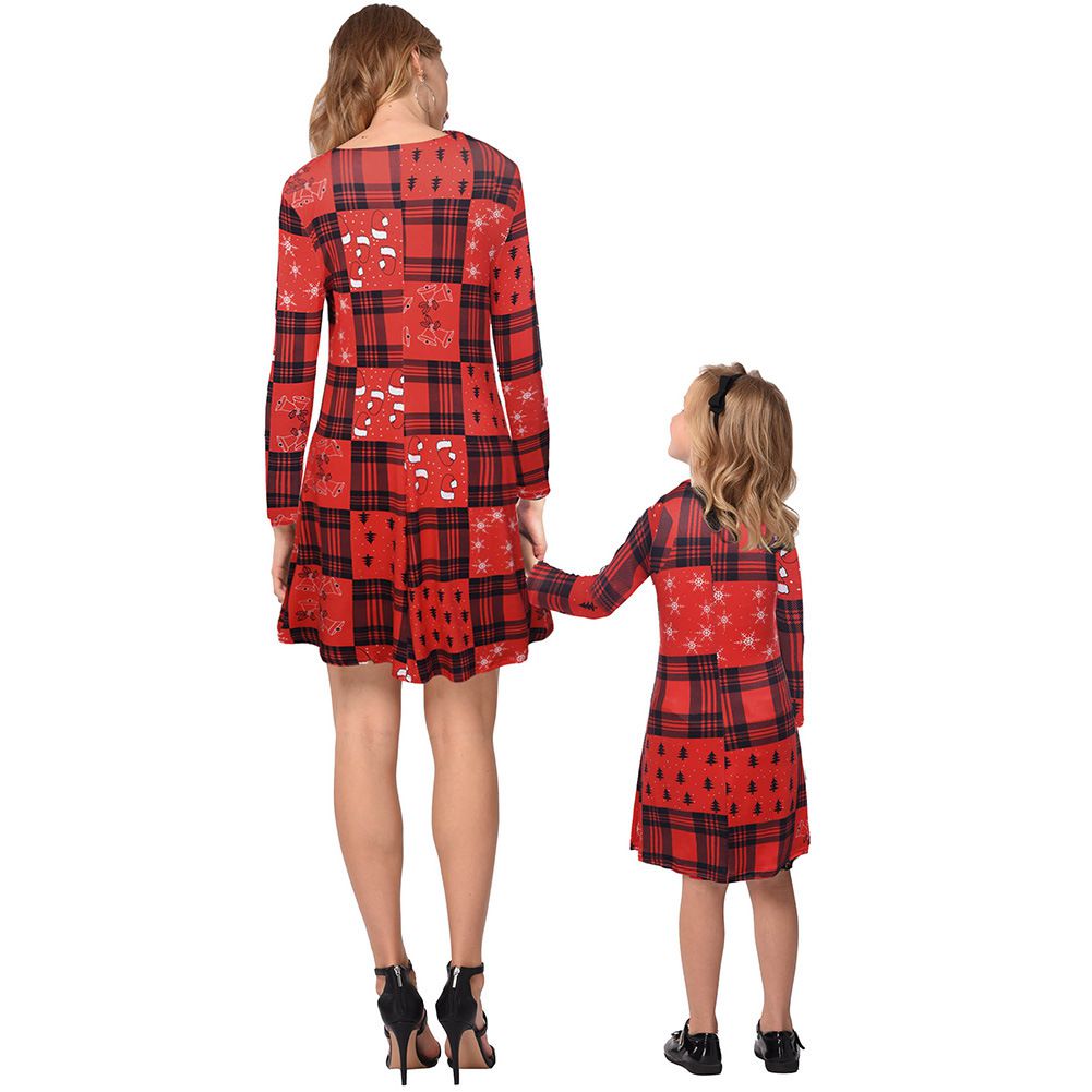 2025 new snowflake Christmas stocking print long-sleeved dress Christmas parent-child dress