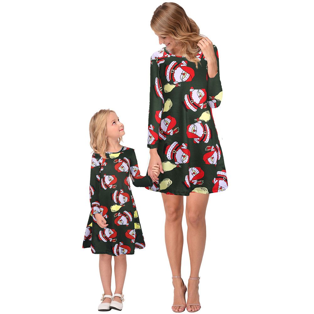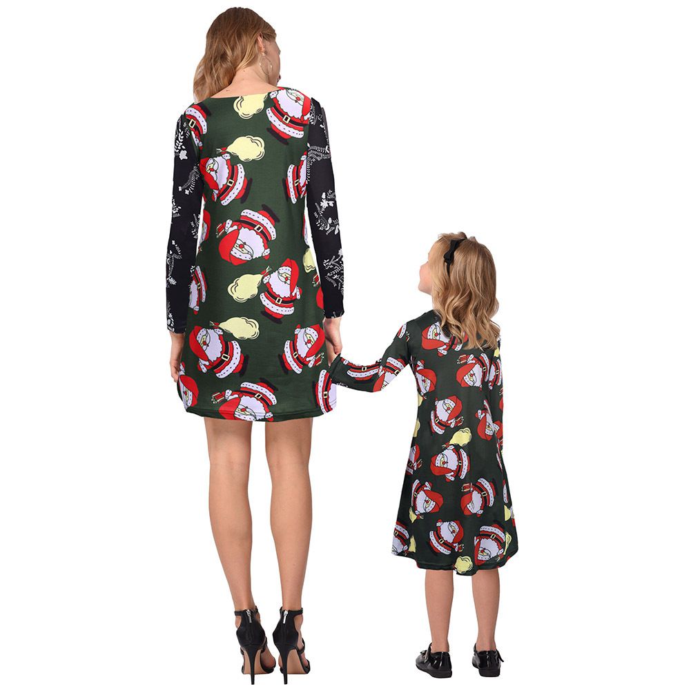 2025 new snowflake Christmas stocking print long-sleeved dress Christmas parent-child dress
