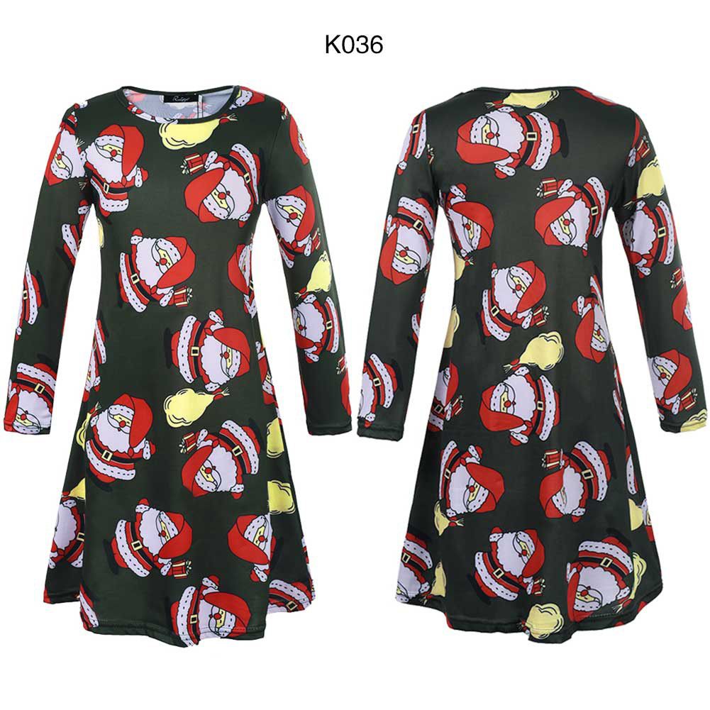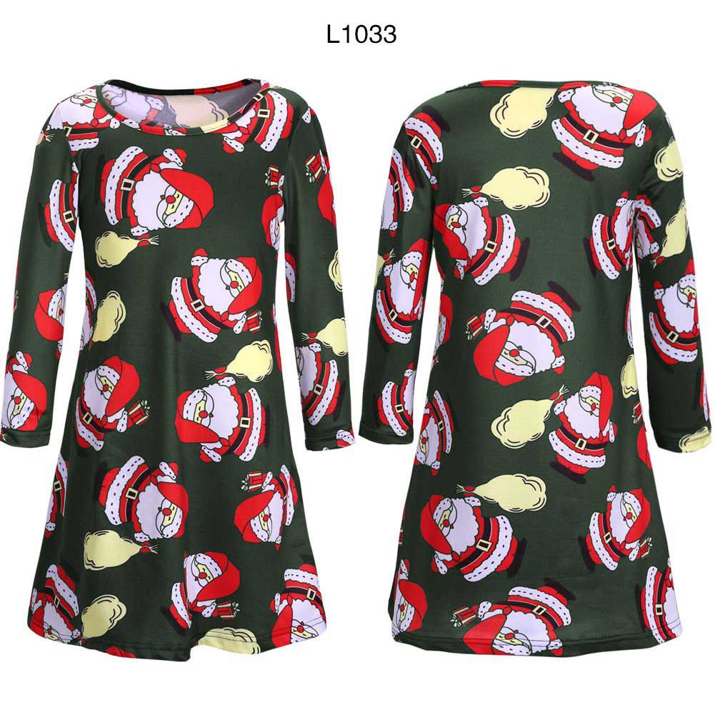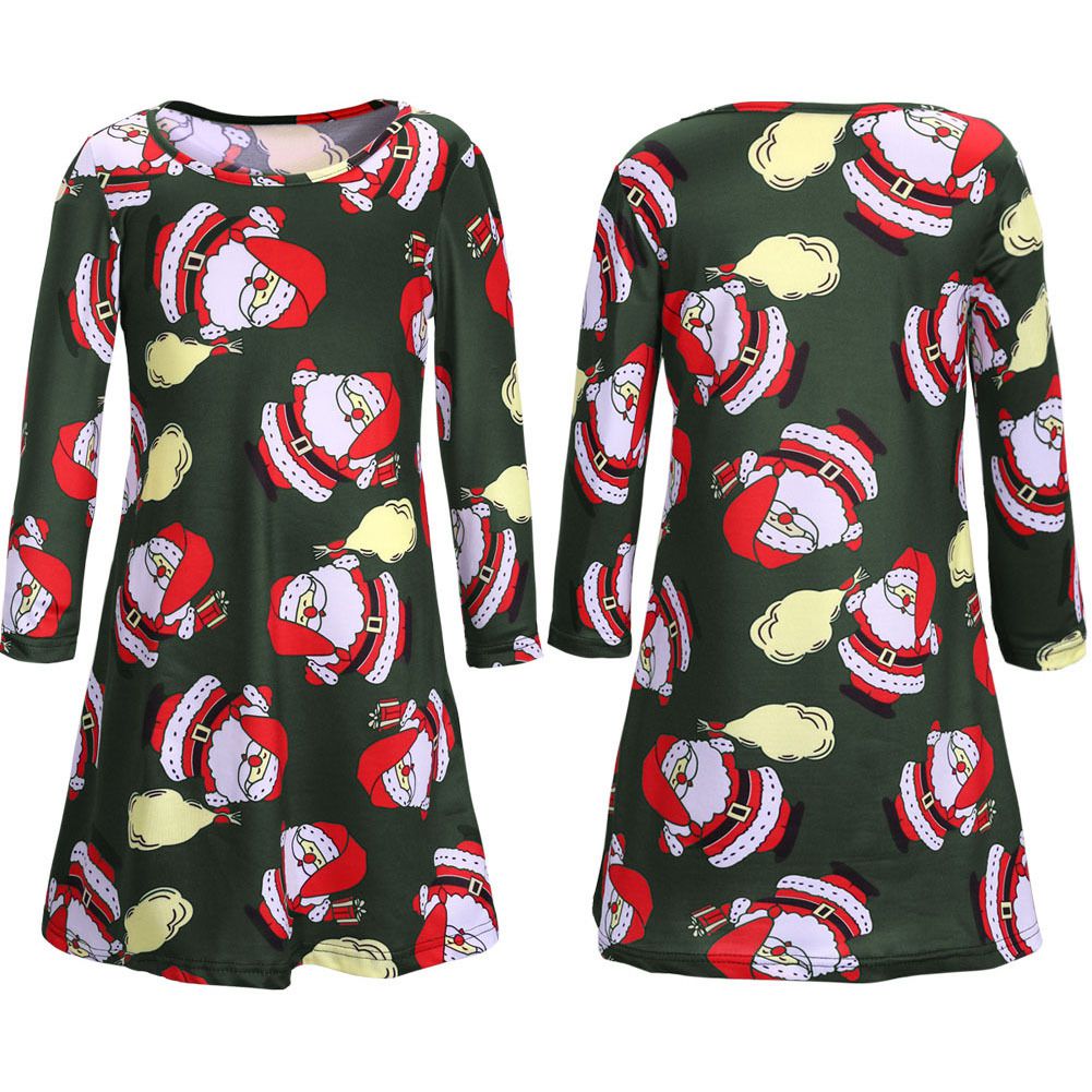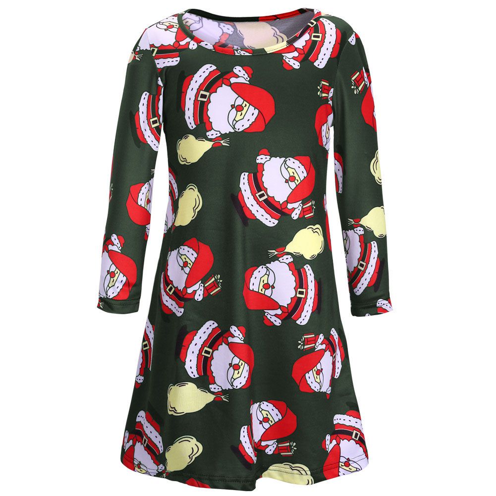 Girl's autumn and winter new dress Christmas day long sleeve printed children's dress