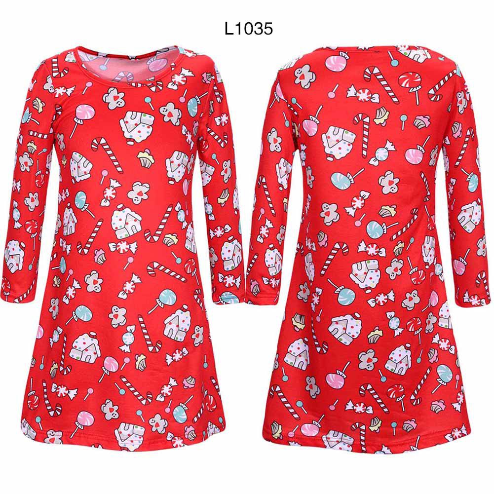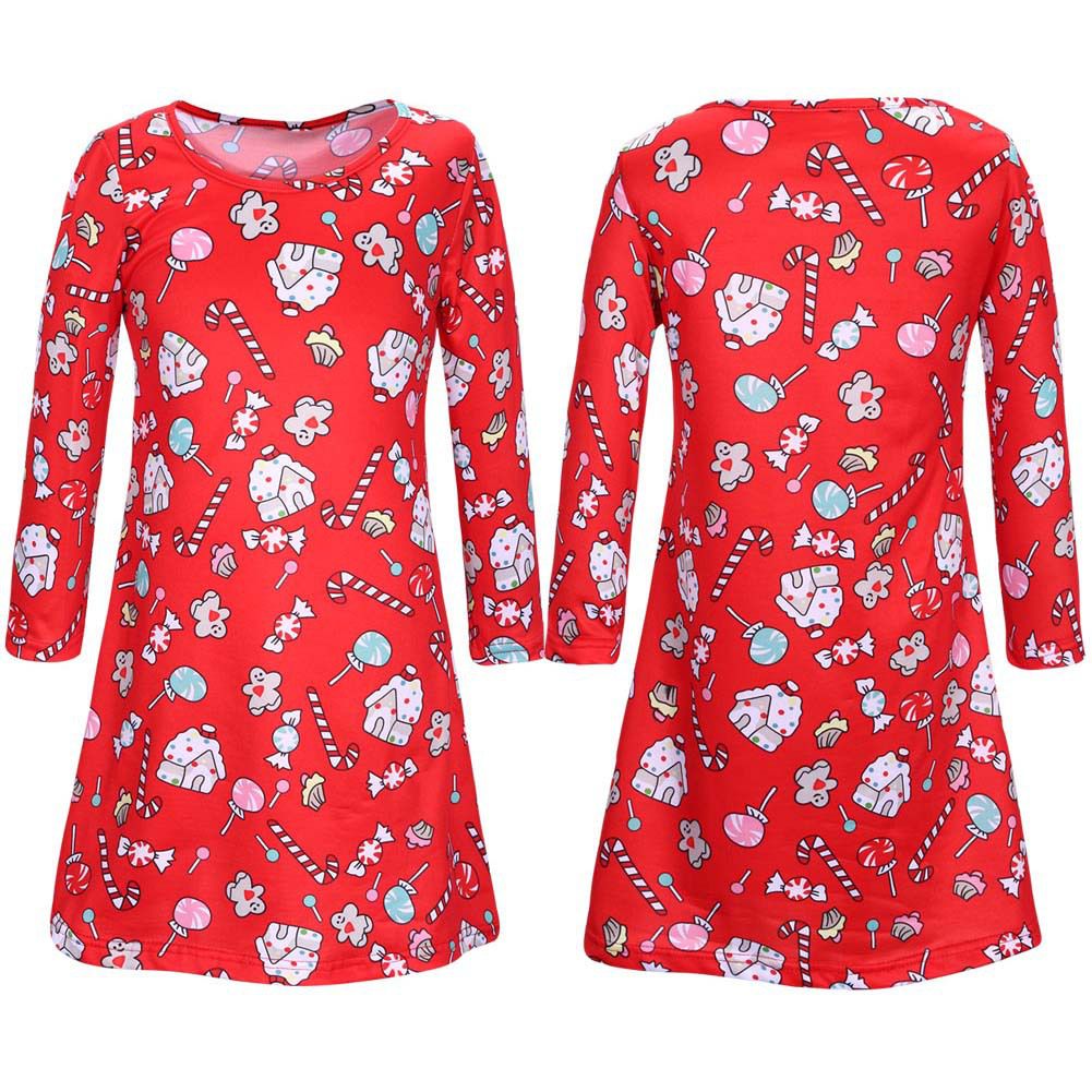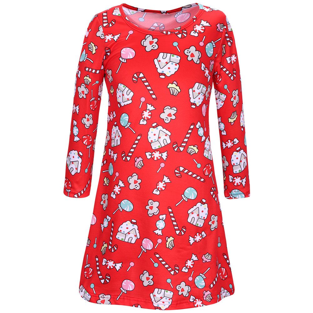 Girl's autumn and winter new dress Christmas day long sleeve printed children's dress
