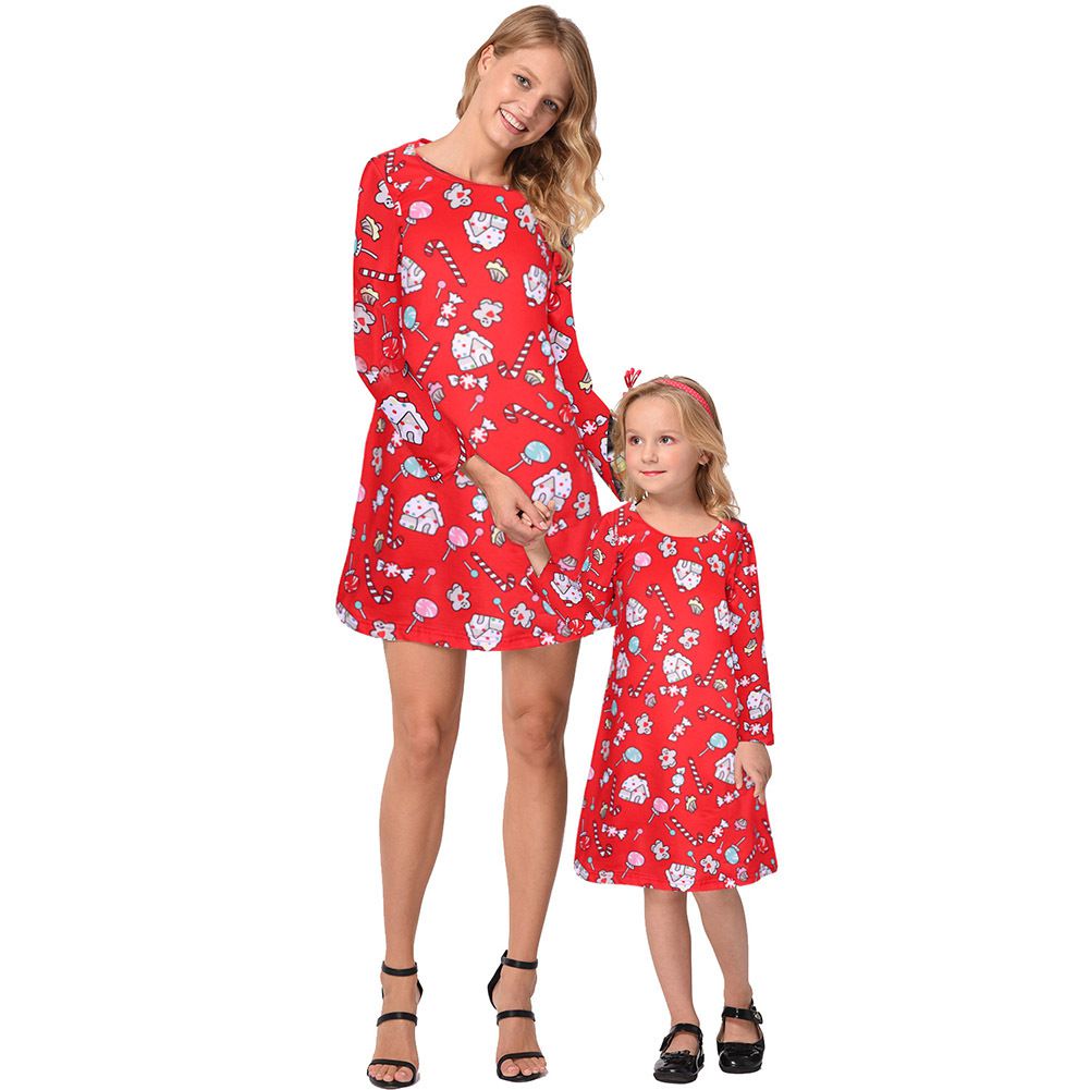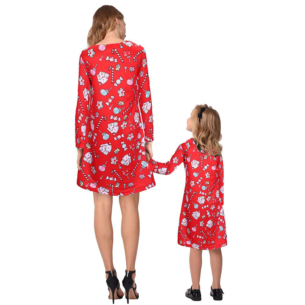 2025 new snowflake Christmas stocking print long-sleeved dress Christmas parent-child dress
