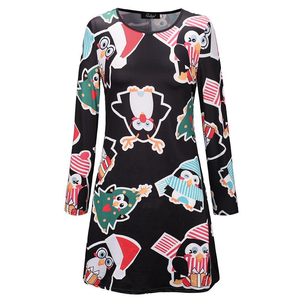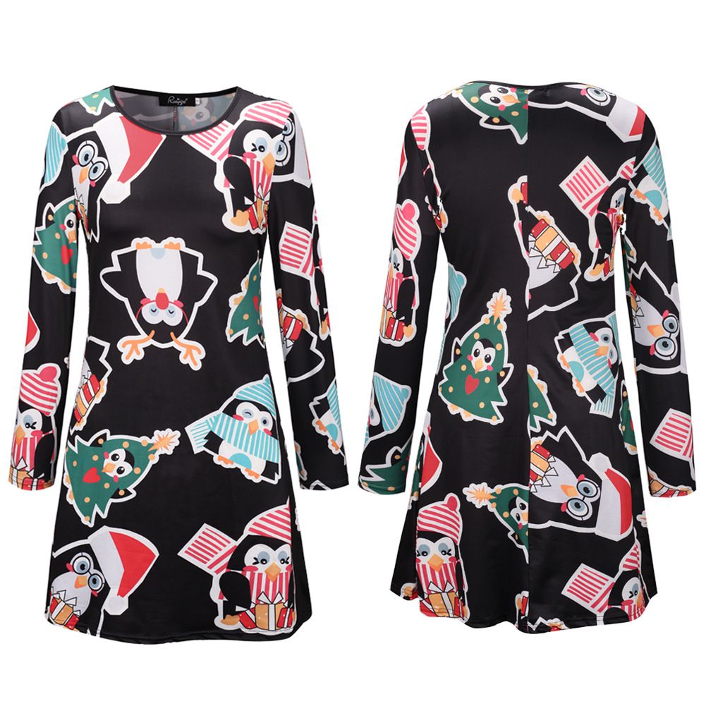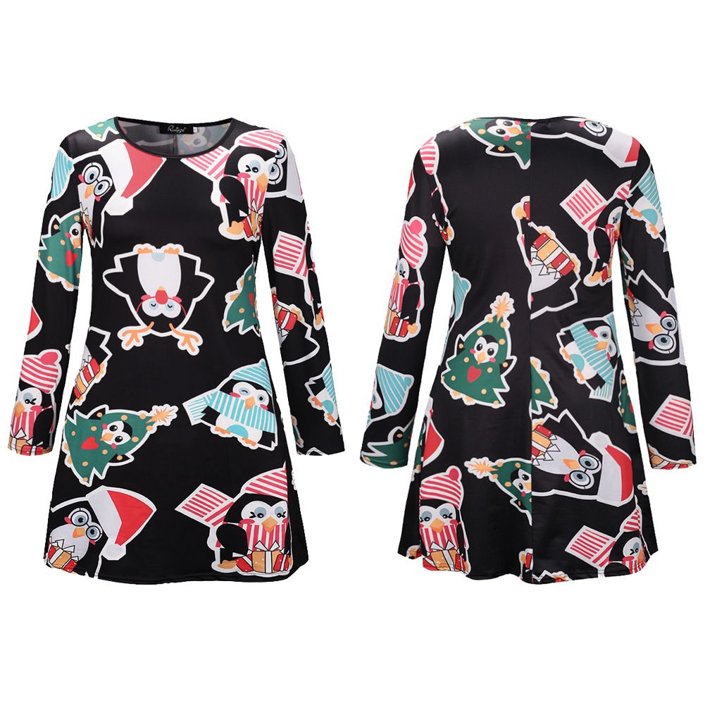 2025 Christmas Christmas Spot Cartoon Print Mesh Dress Autumn and Winter