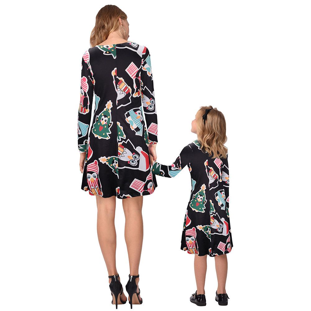 2025 new snowflake Christmas stocking print long-sleeved dress Christmas parent-child dress