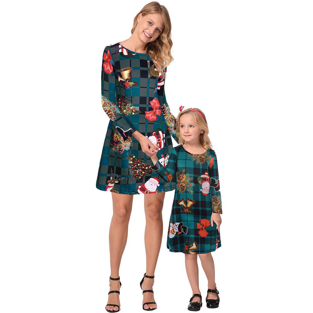 2025 new snowflake Christmas stocking print long-sleeved dress Christmas parent-child dress