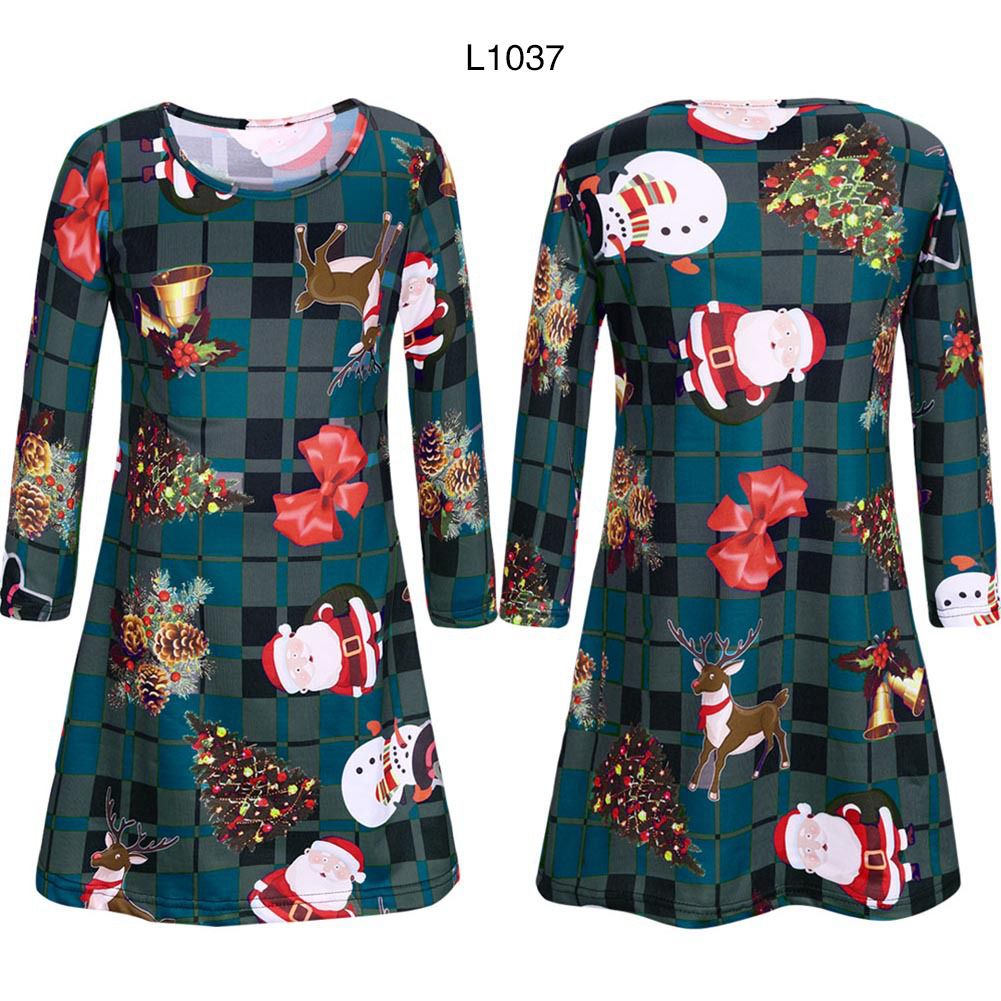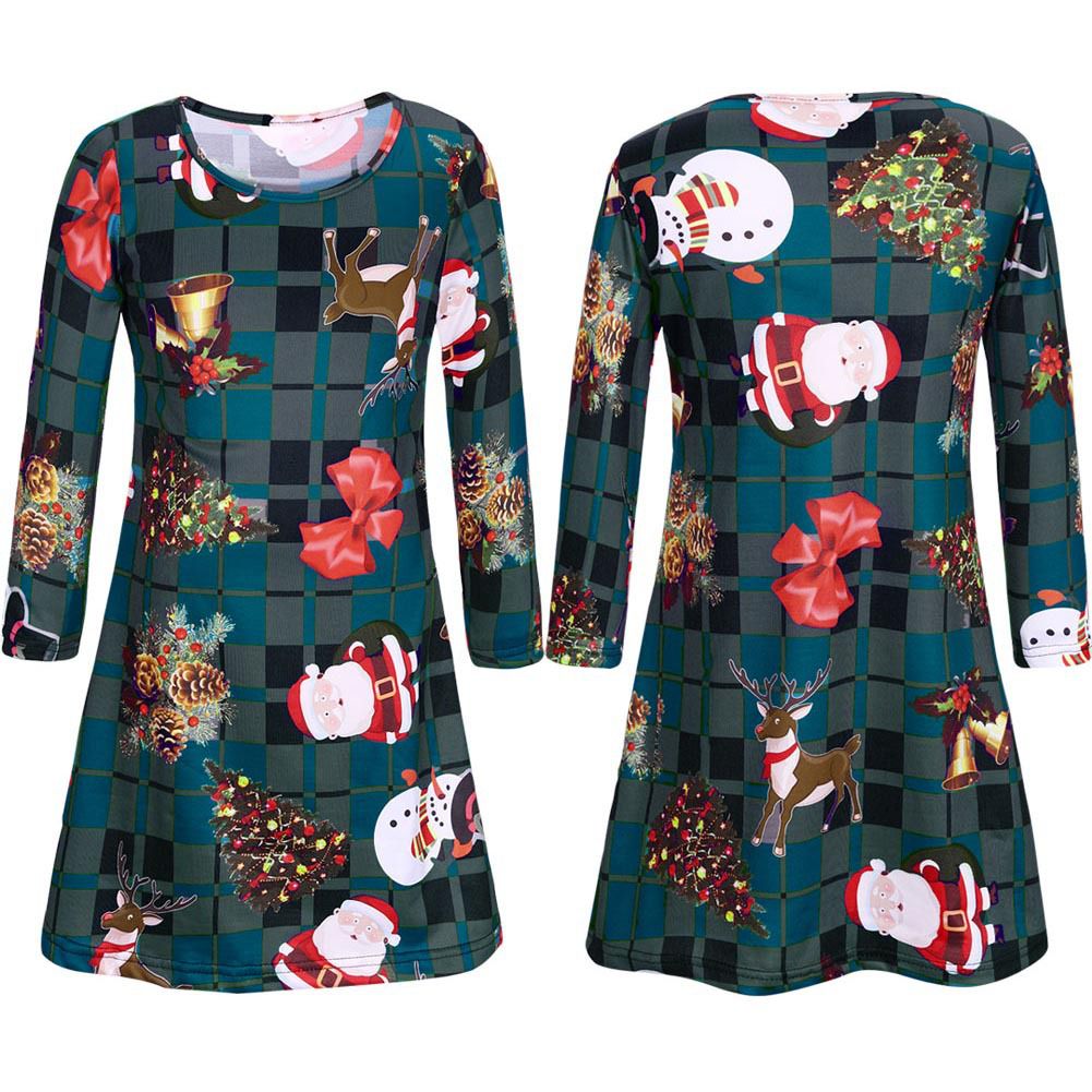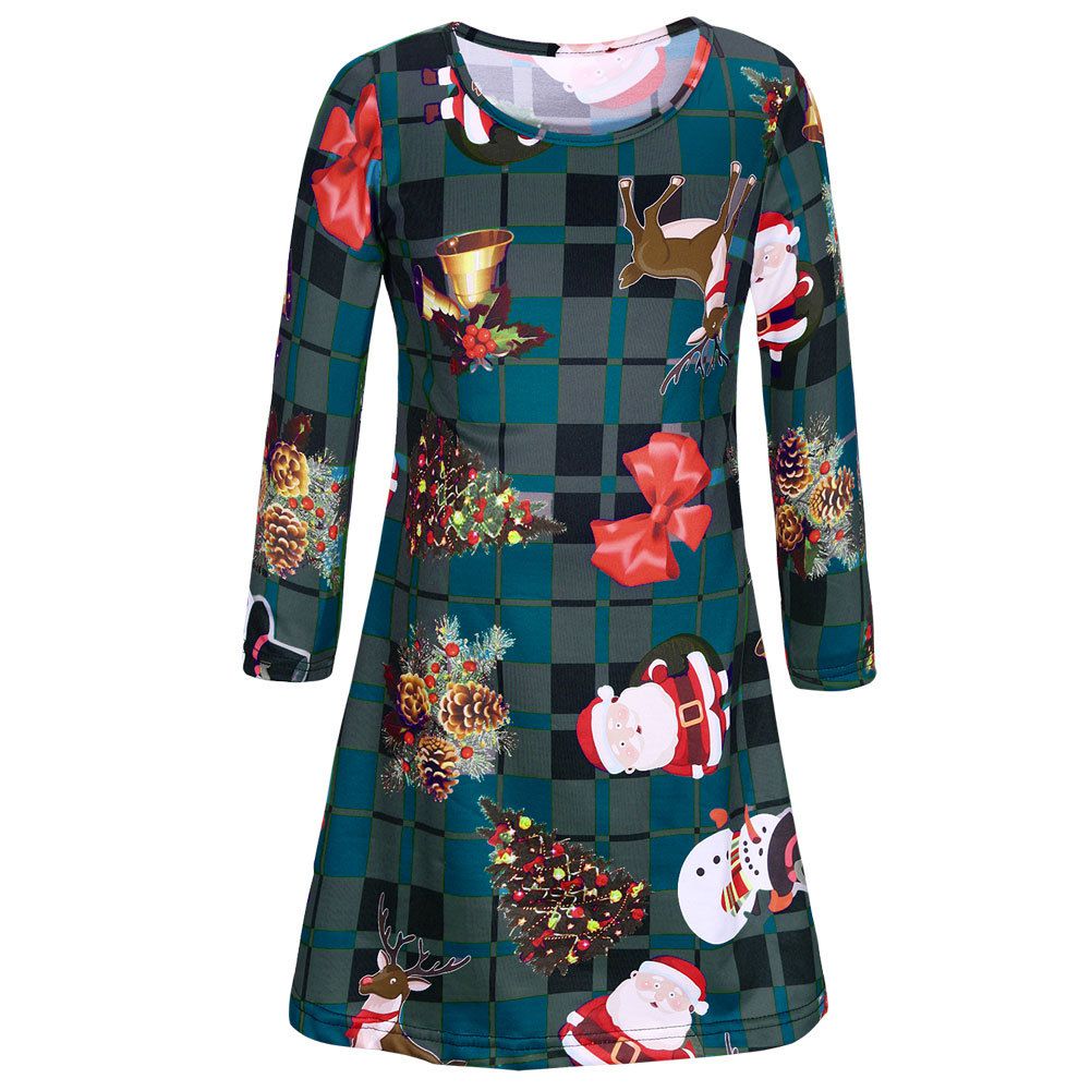 Girl's autumn and winter new dress Christmas day long sleeve printed children's dress