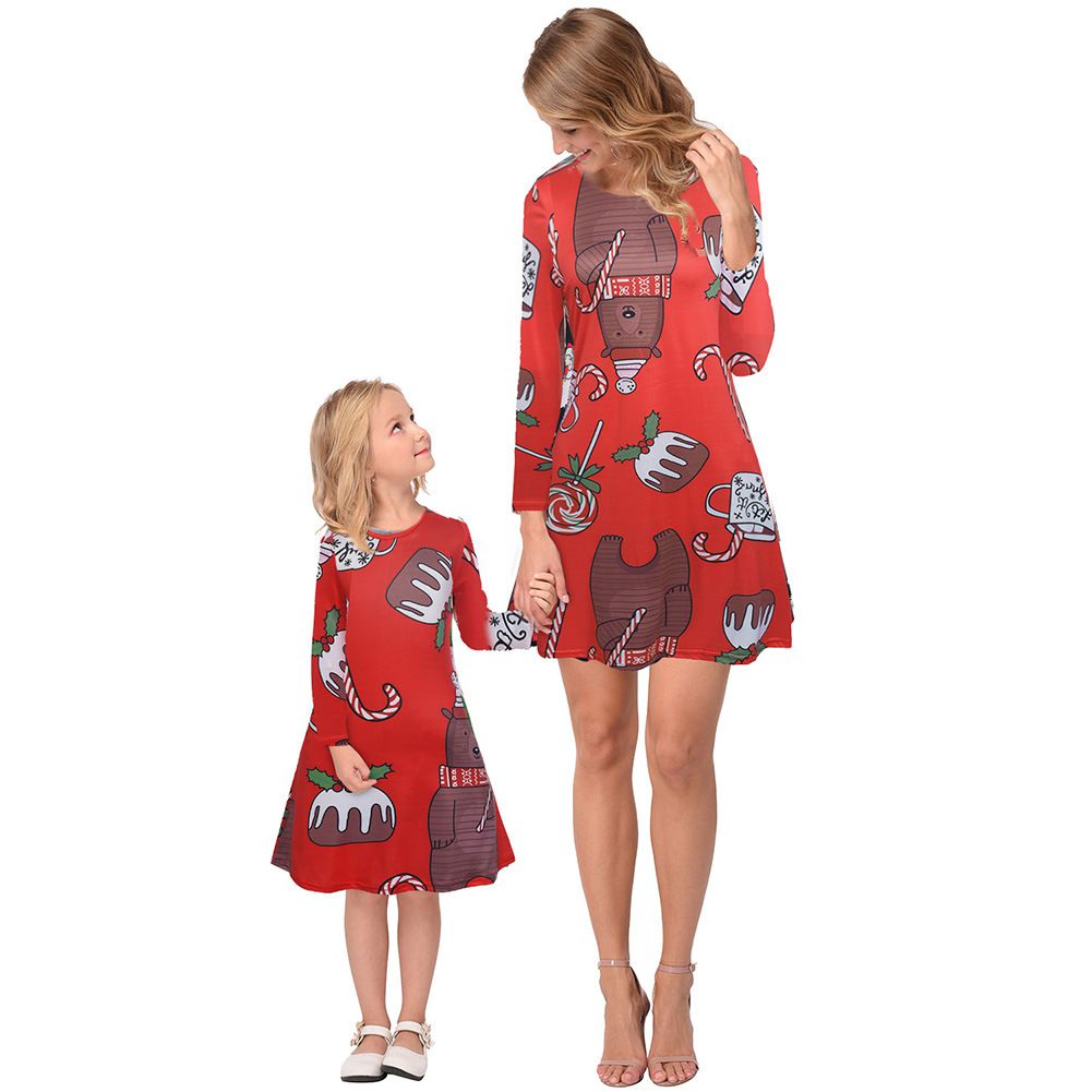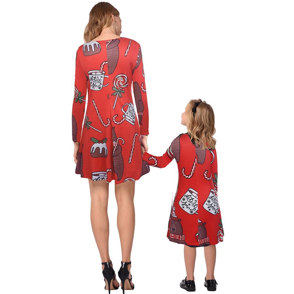 2025 new snowflake Christmas stocking print long-sleeved dress Christmas parent-child dress