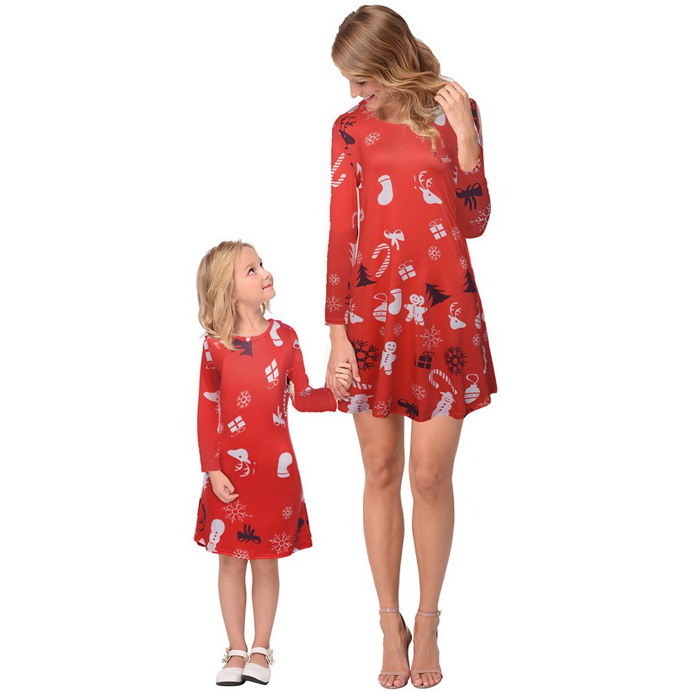 2025 new snowflake Christmas stocking print long-sleeved dress Christmas parent-child dress