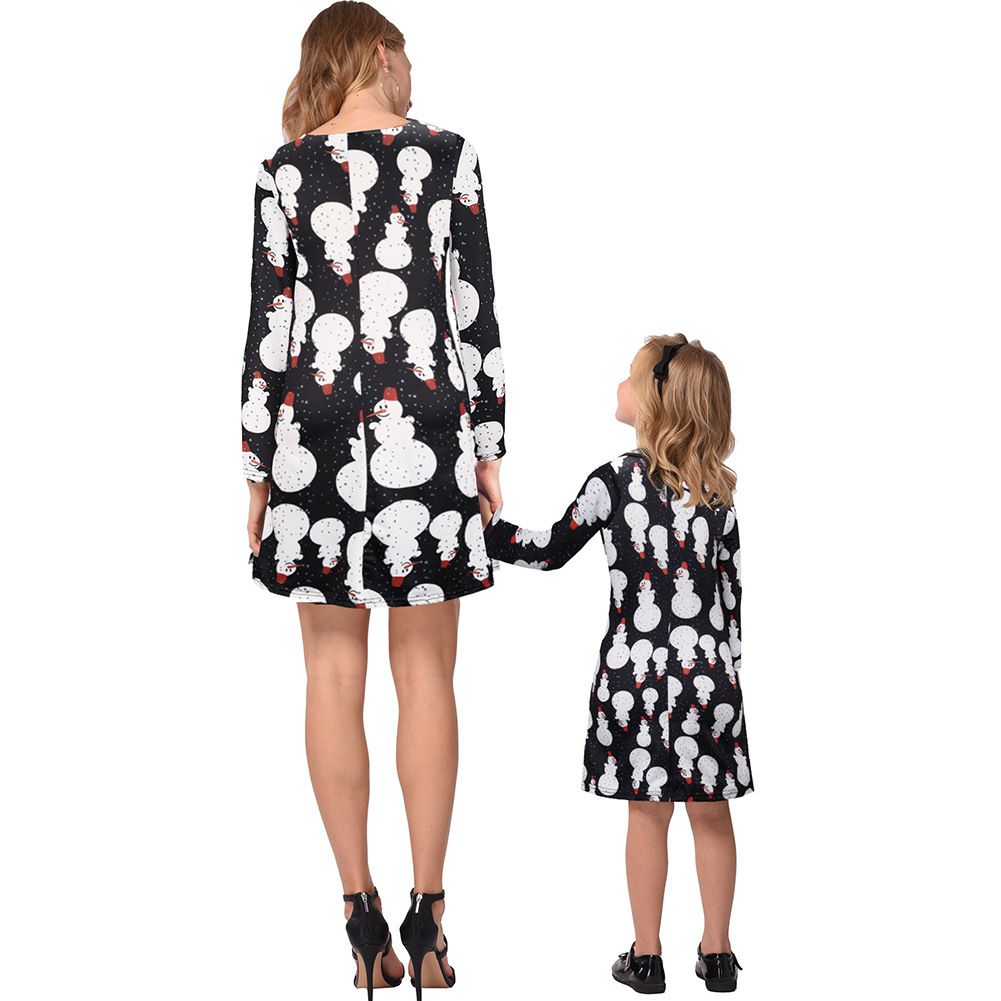 2025 new snowflake Christmas stocking print long-sleeved dress Christmas parent-child dress