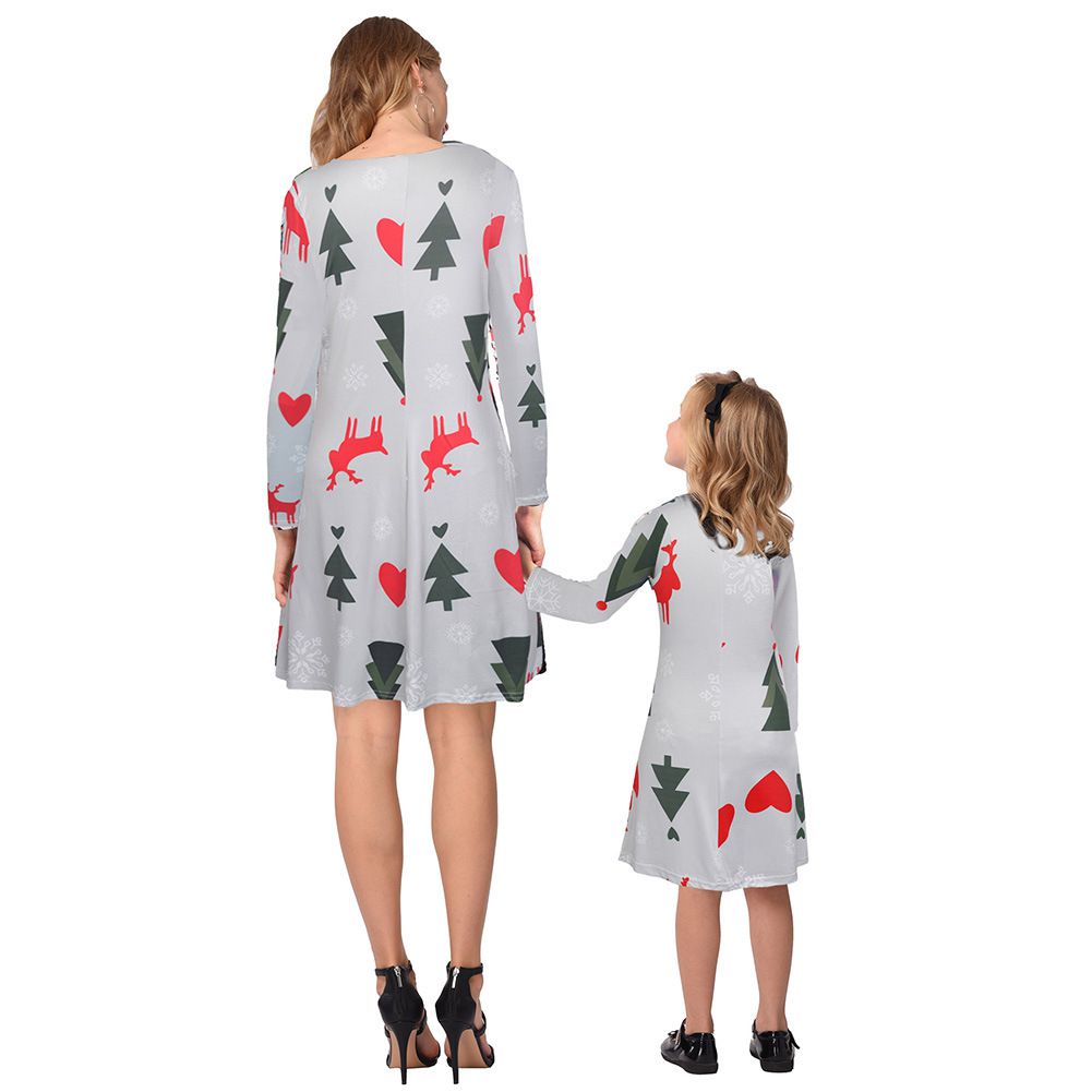 2025 new snowflake Christmas stocking print long-sleeved dress Christmas parent-child dress