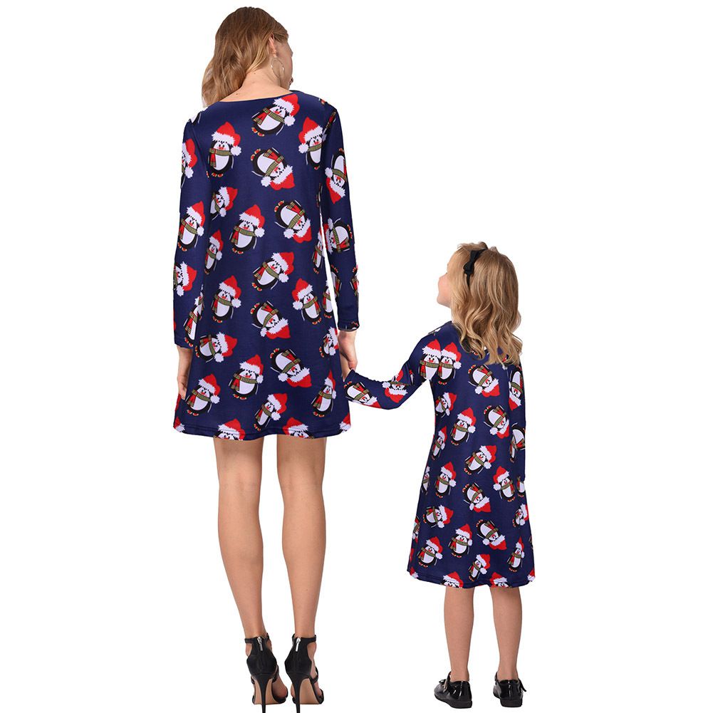 2025 new snowflake Christmas stocking print long-sleeved dress Christmas parent-child dress