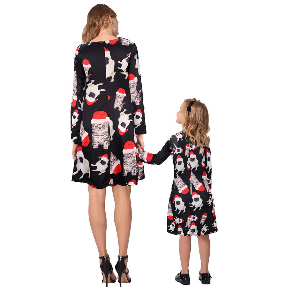 2025 new snowflake Christmas stocking print long-sleeved dress Christmas parent-child dress
