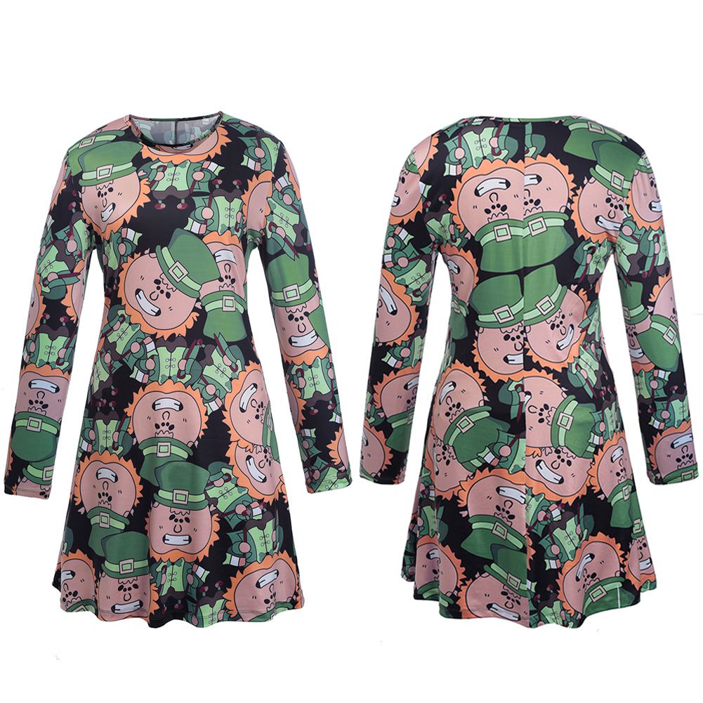 2025 autumn and winter new women's long-sleeved loose v-neck printed large size women's dress