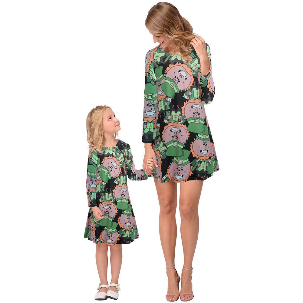 2025 hot lucky star ice snowball Christmas print dress parent-child skirt