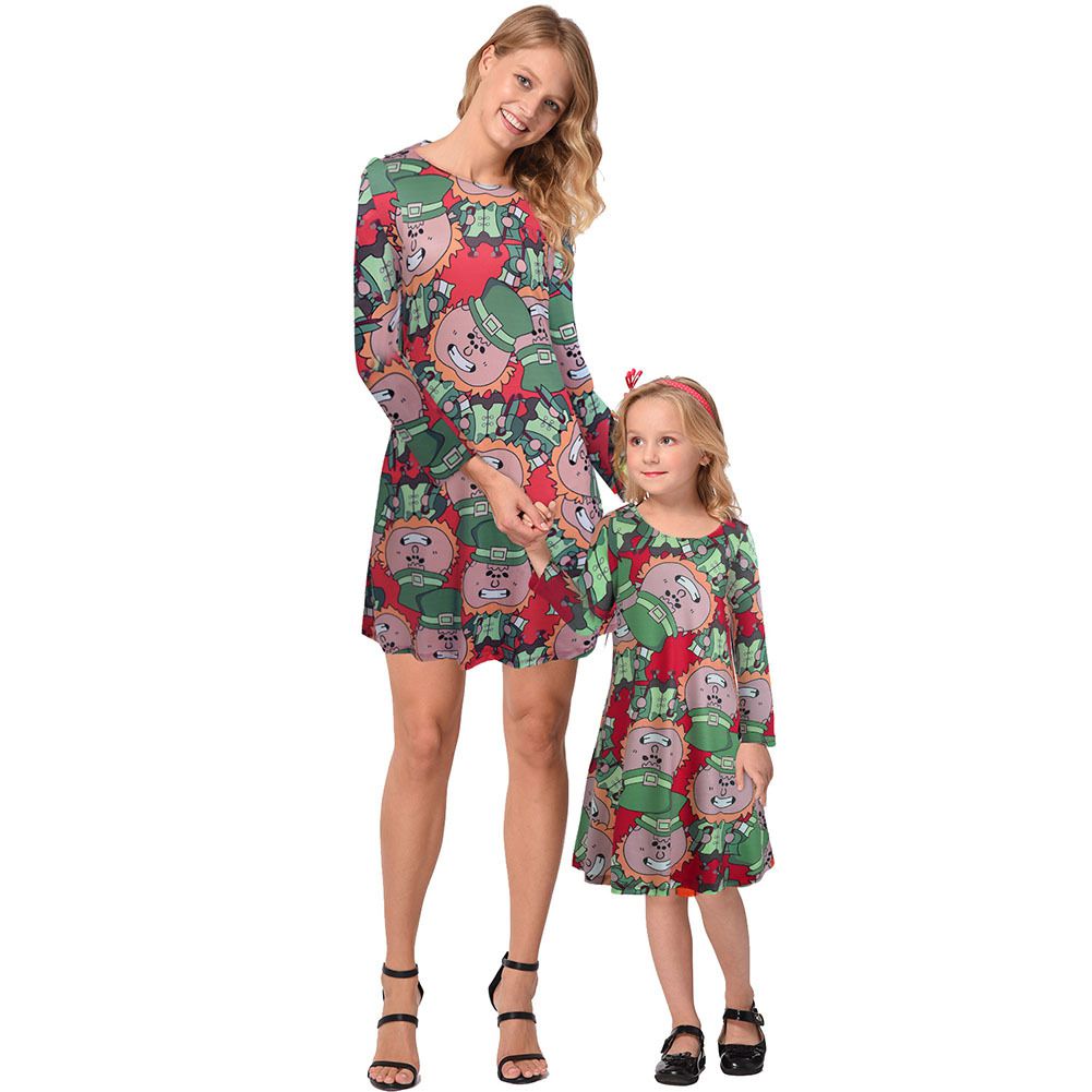 2025 new snowflake Christmas stocking print long-sleeved dress Christmas parent-child dress