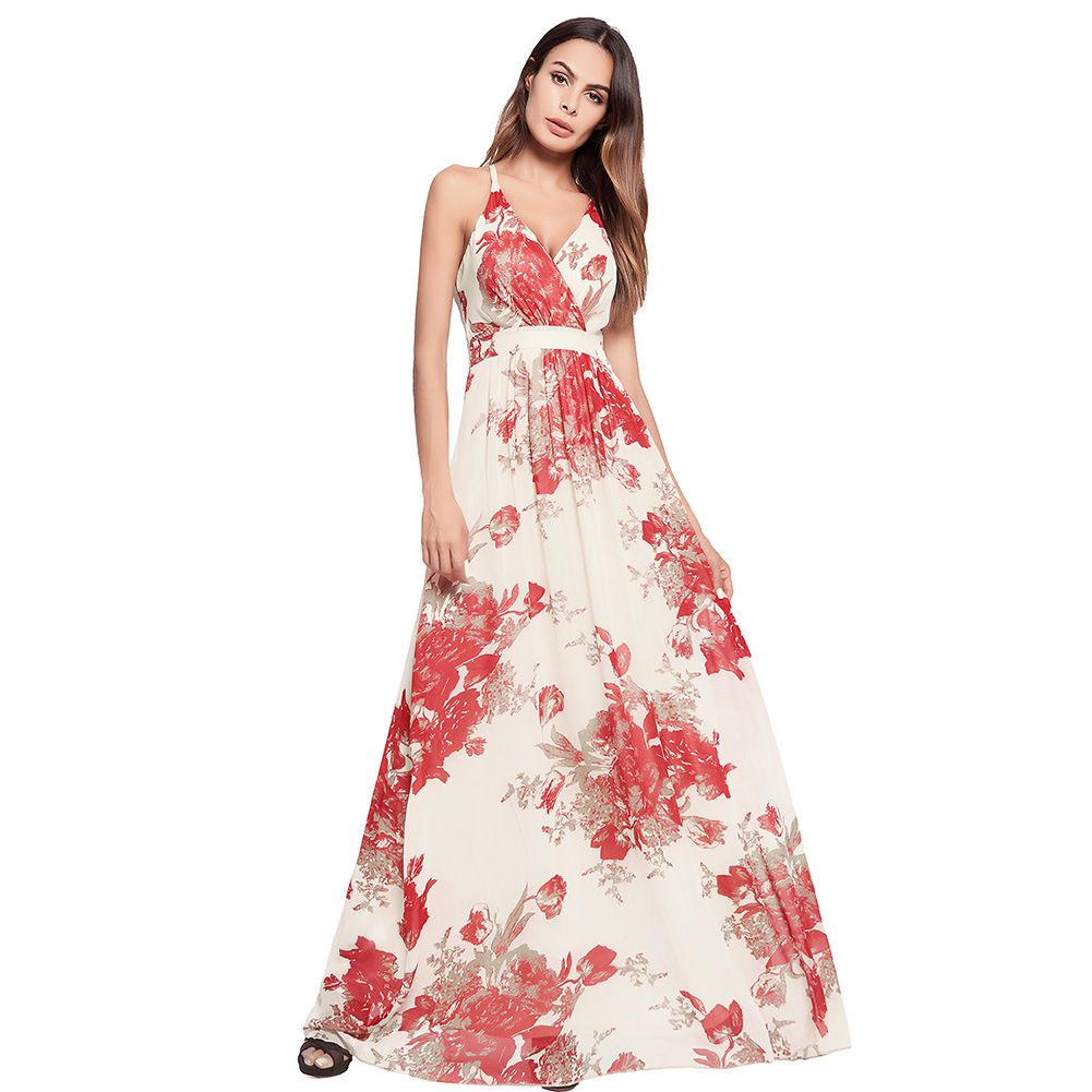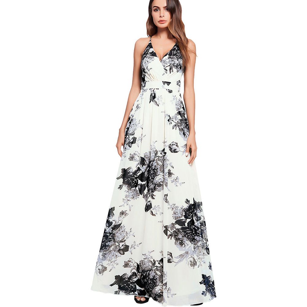 2025 spring and summer cross sling bohemian print long skirt dress backless dress
