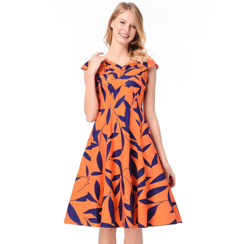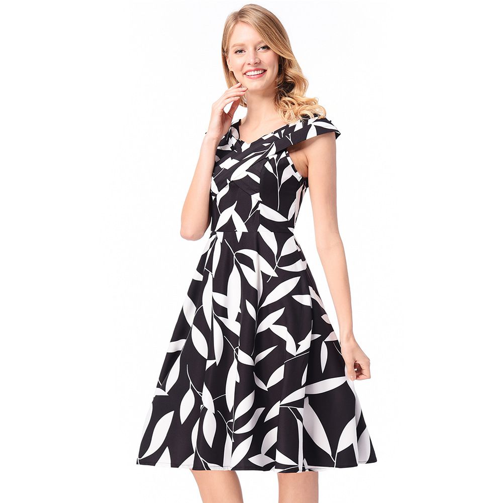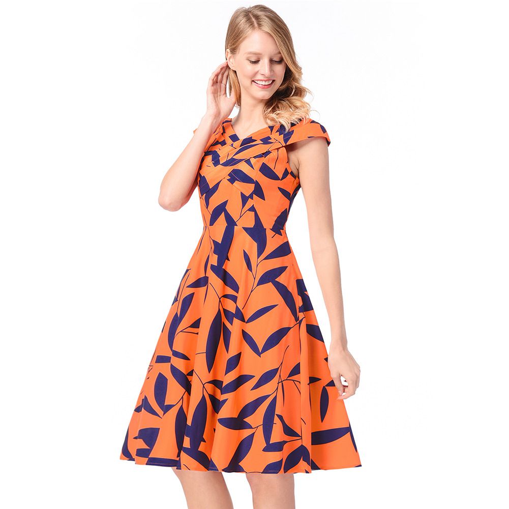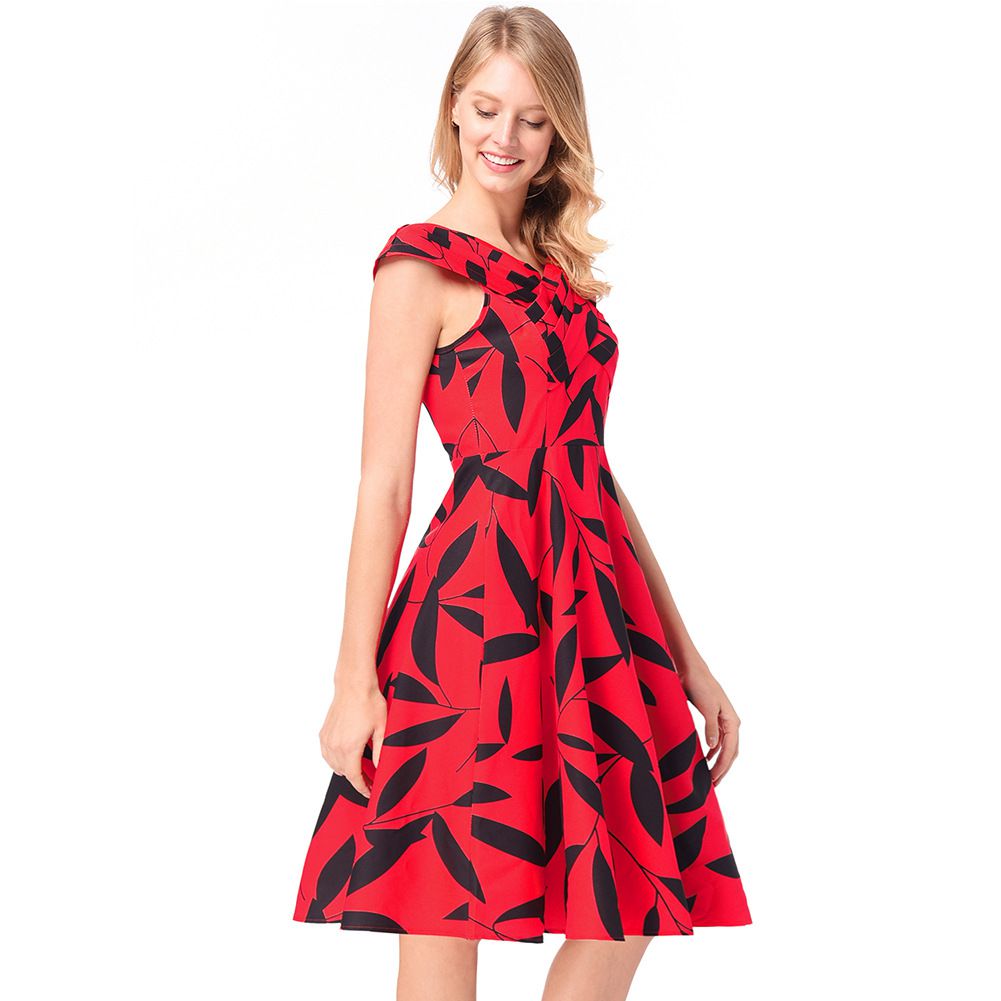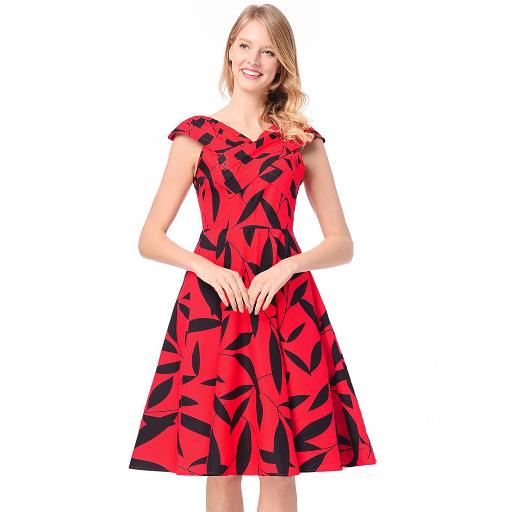 2025 spring and summer new Hepburn red dress heart machine cross collar print sleeveless dress
