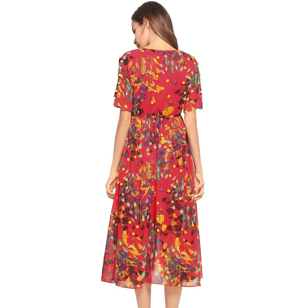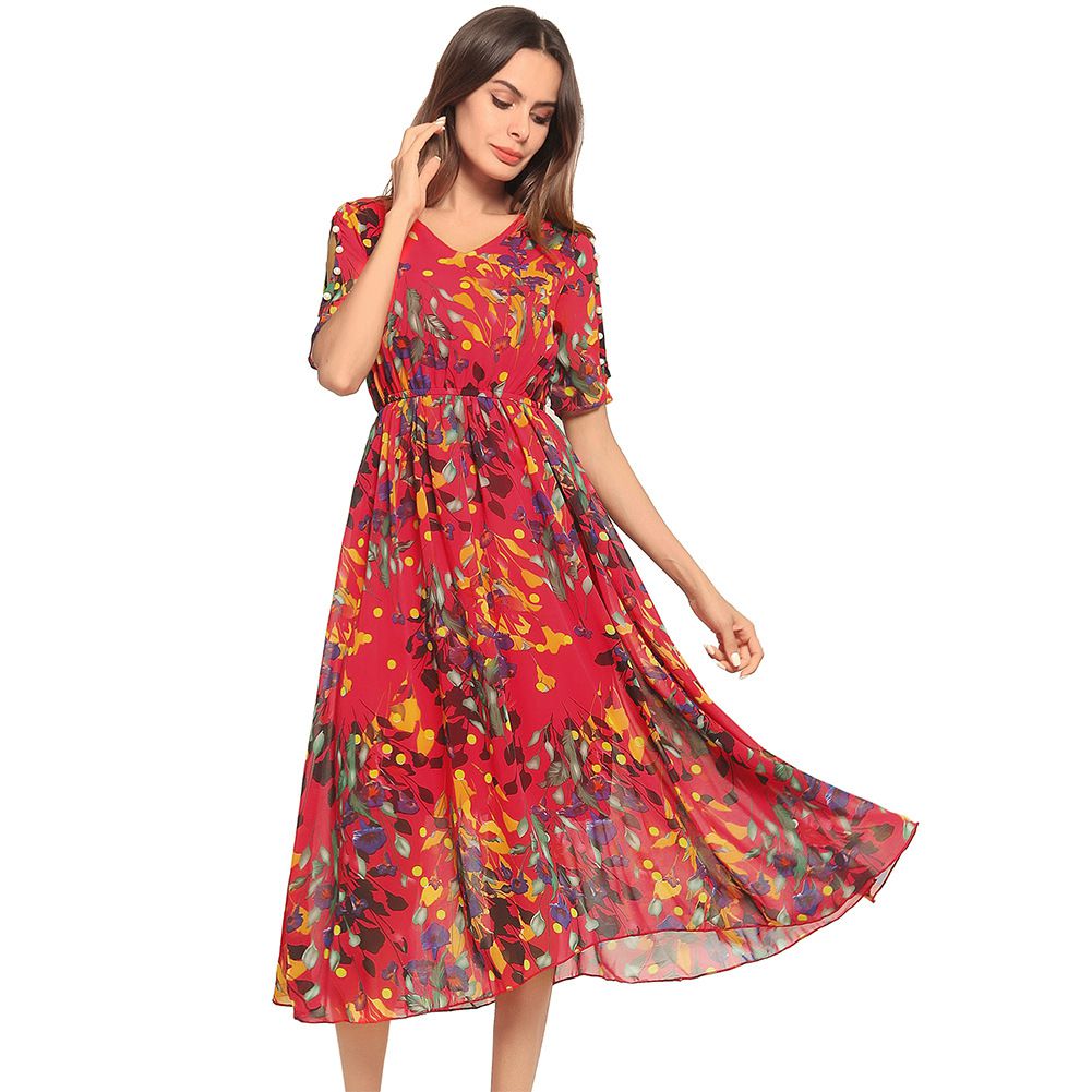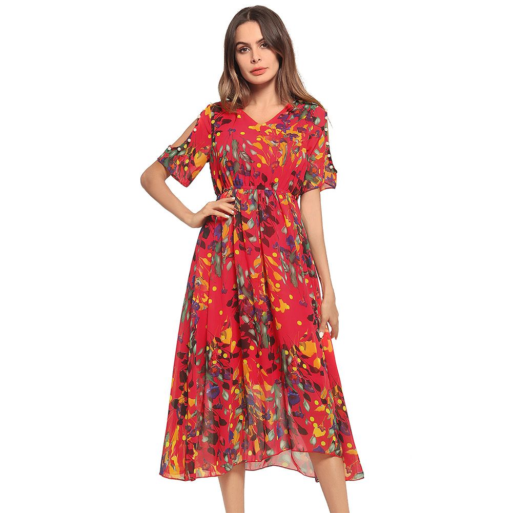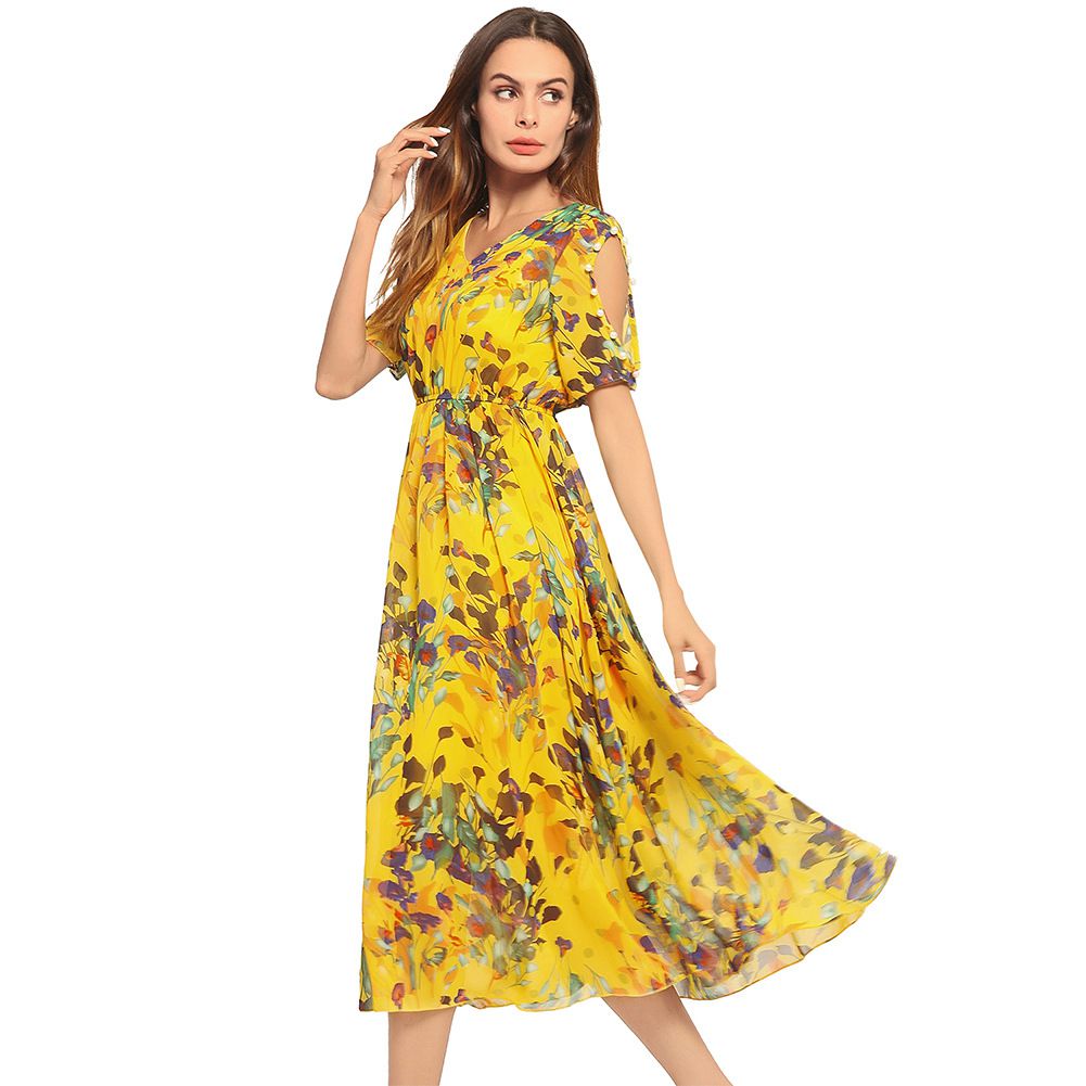 2025 spring and summer new hot off-the-shoulder beach dress short-sleeved chiffon dress