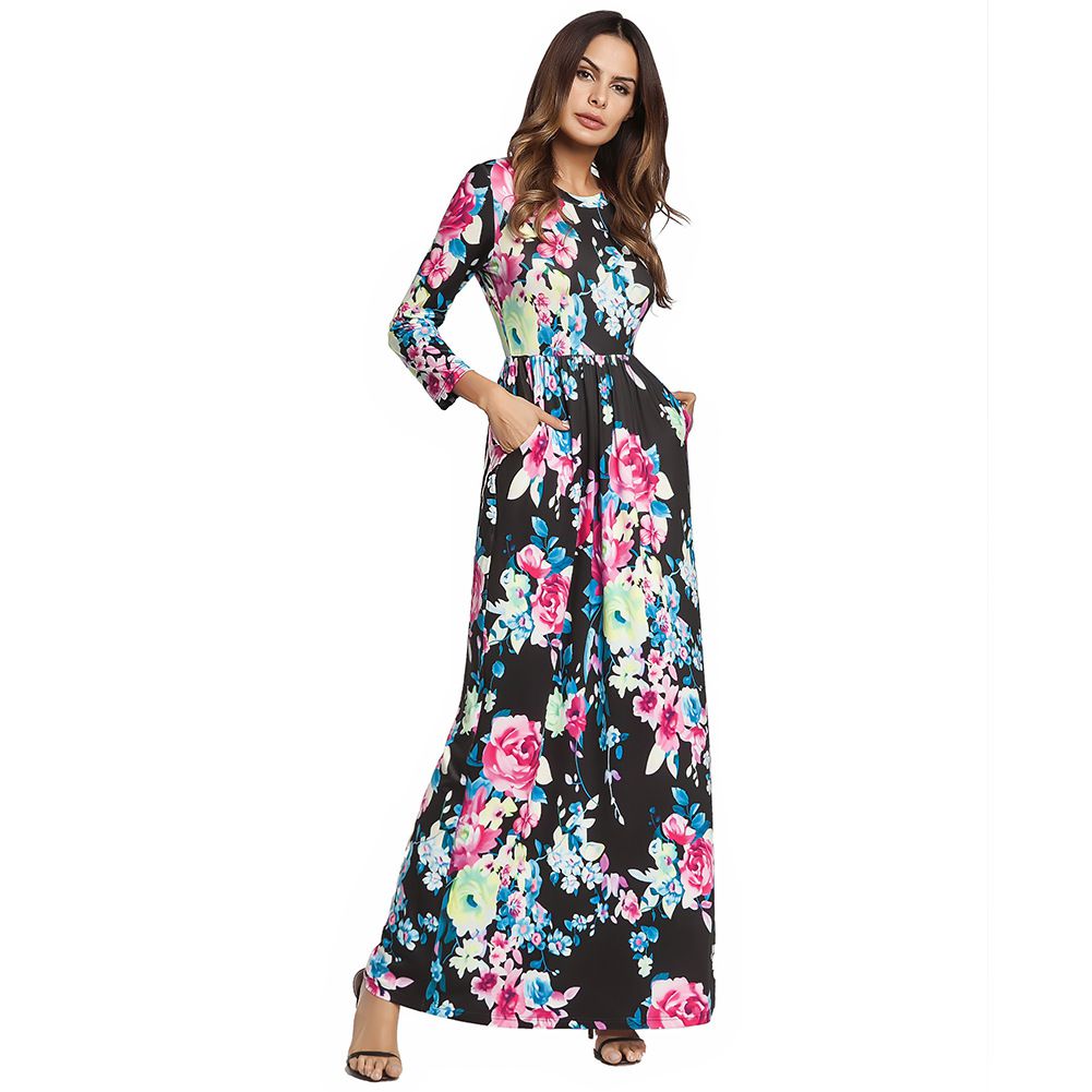 Hot Sale 2025 Spring New Medium Sleeve High Waist A-Line Skirt Print Dress