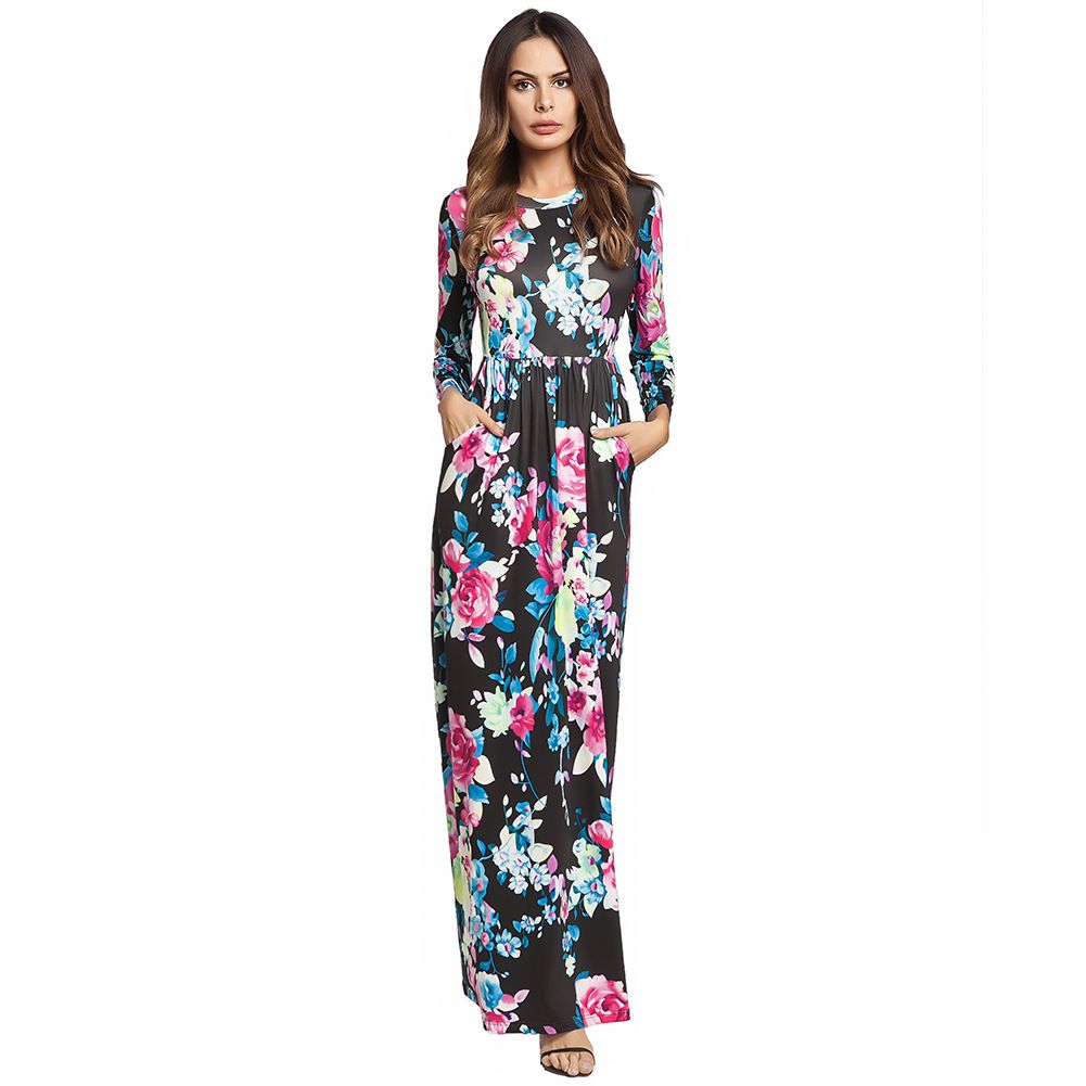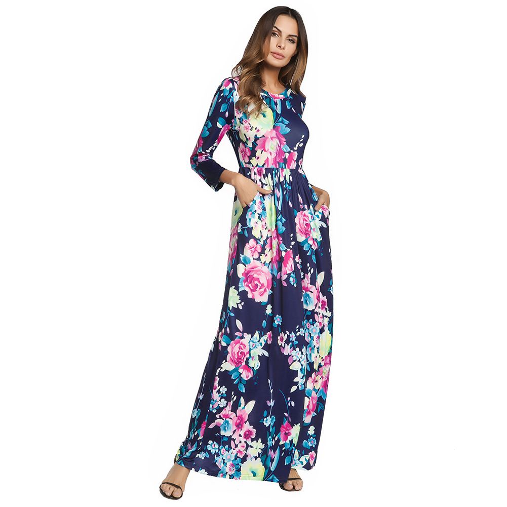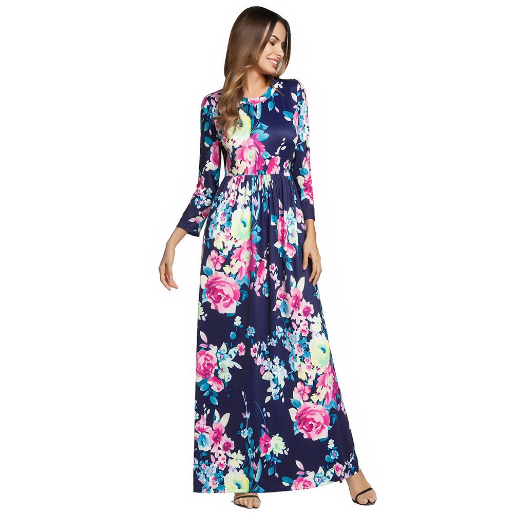 2025 spring and summer waist slimming large swing skirt sleeve printed dress