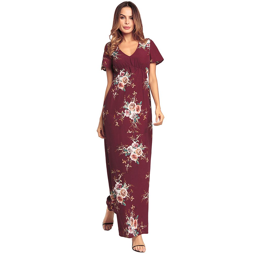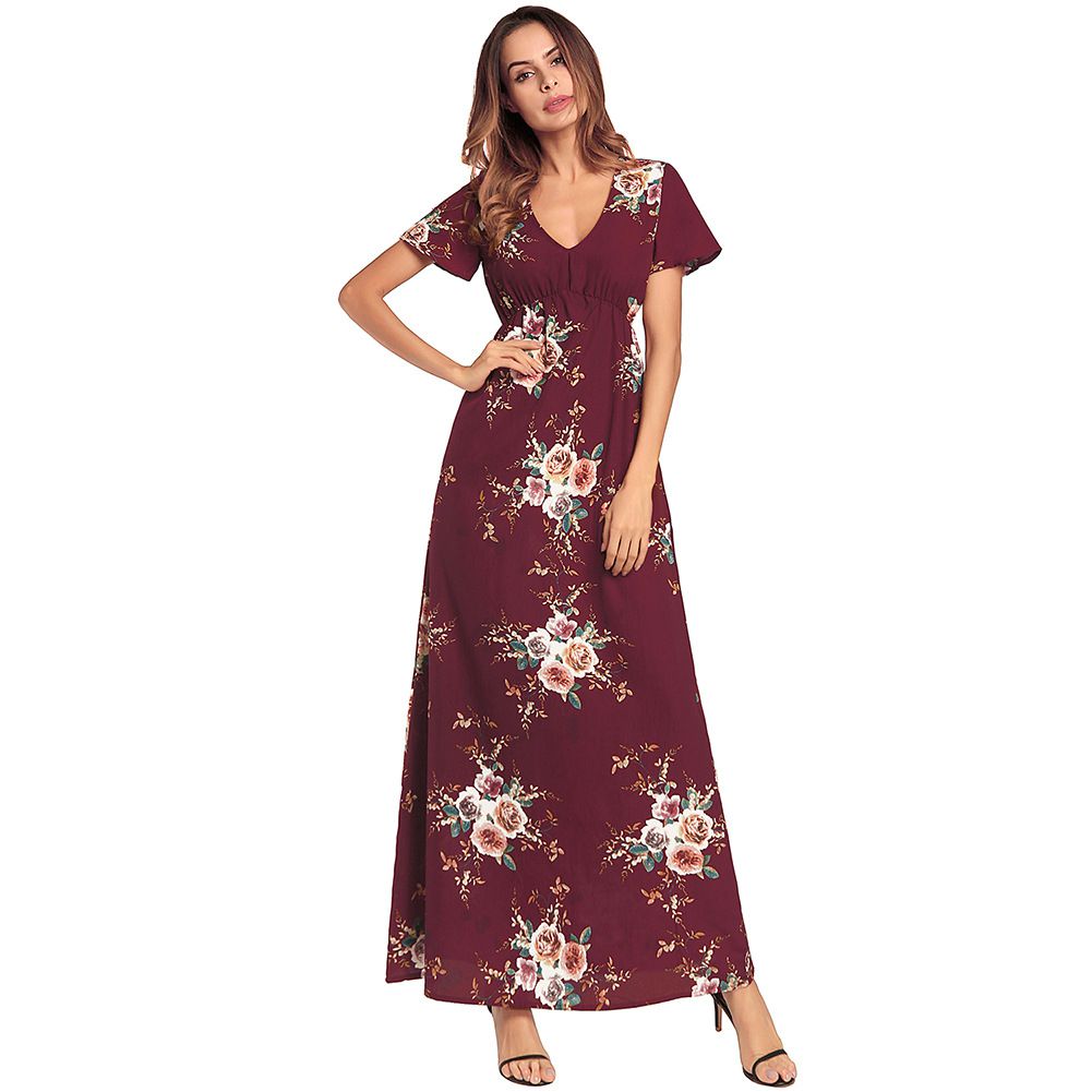 2025 spring and summer new large beach skirt chiffon dress long skirt printed dress