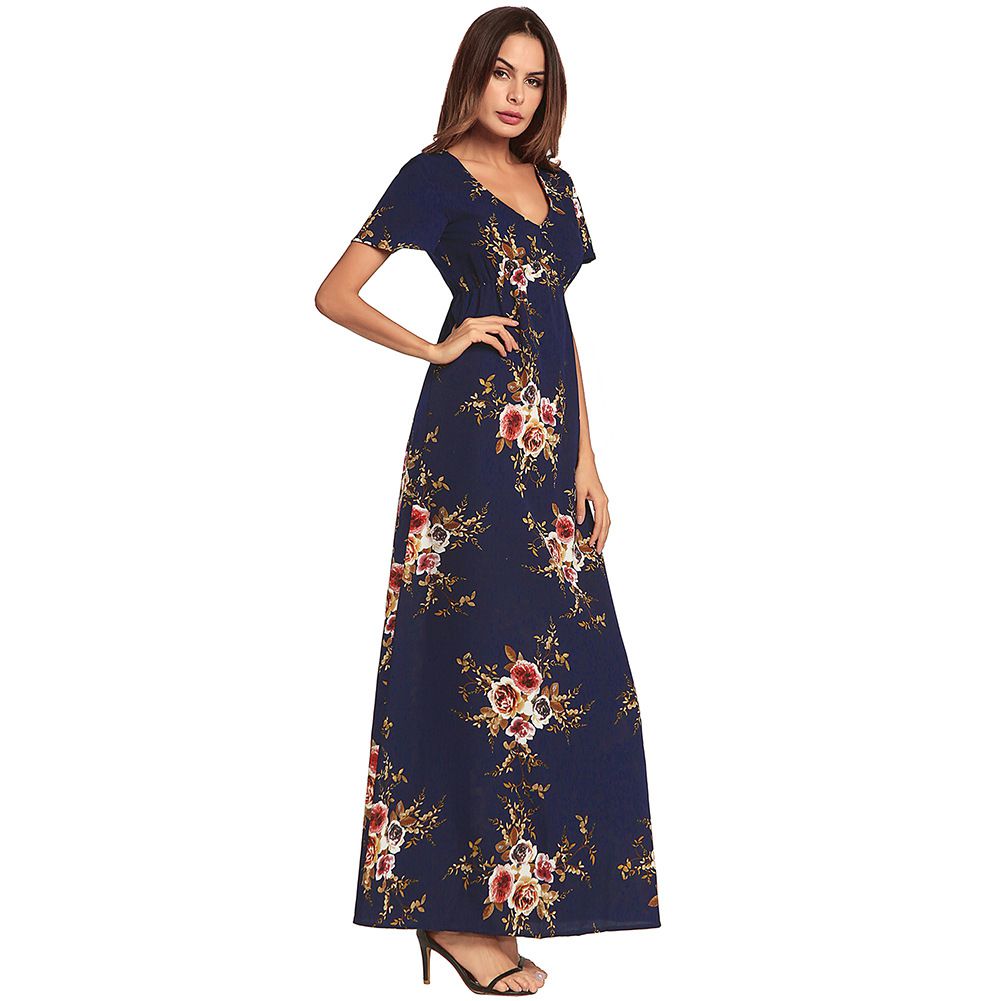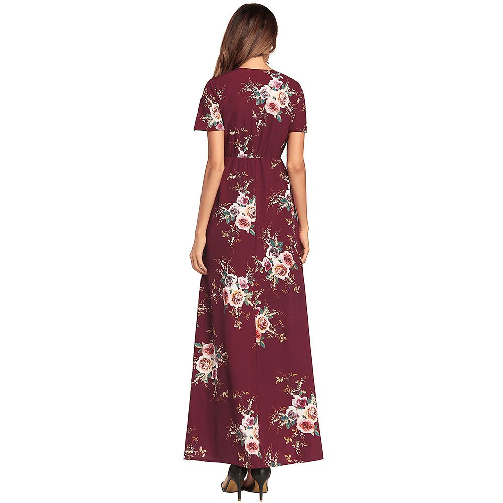 2025 spring and summer new rose print dress retro A word skirt
