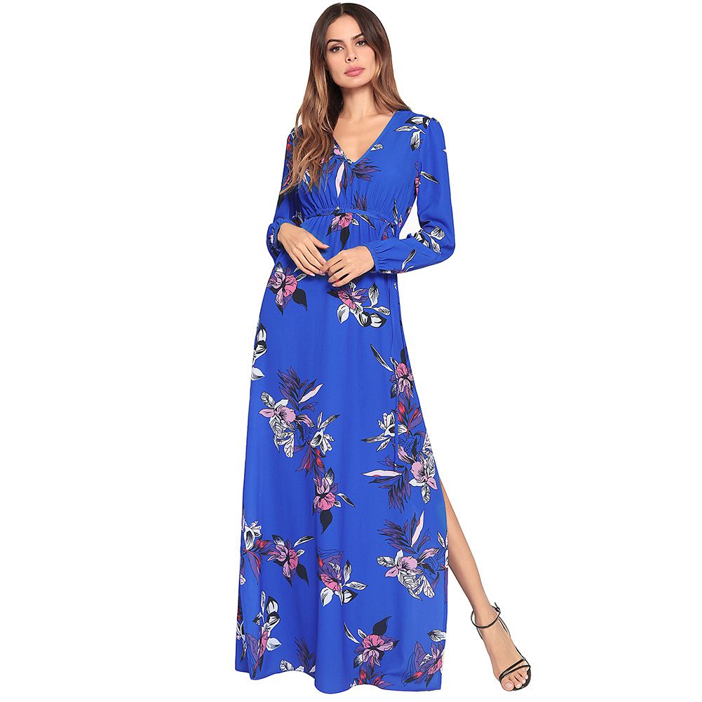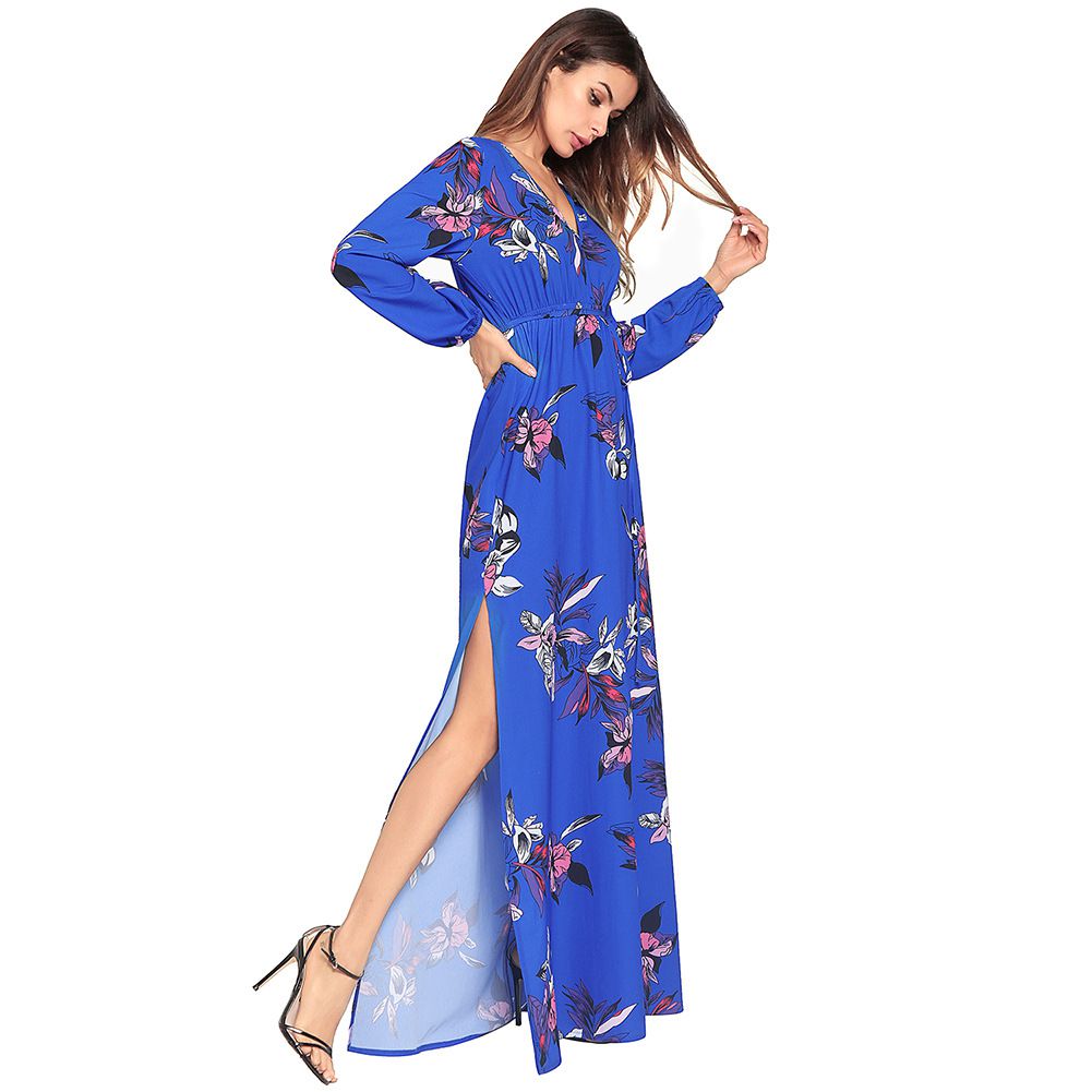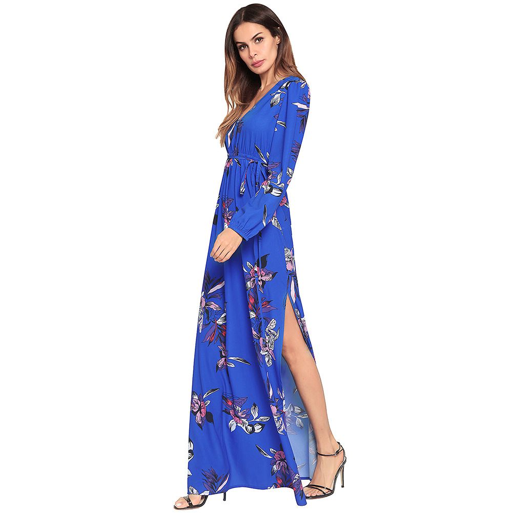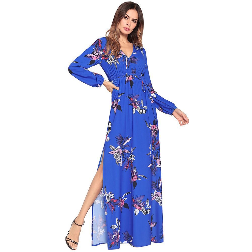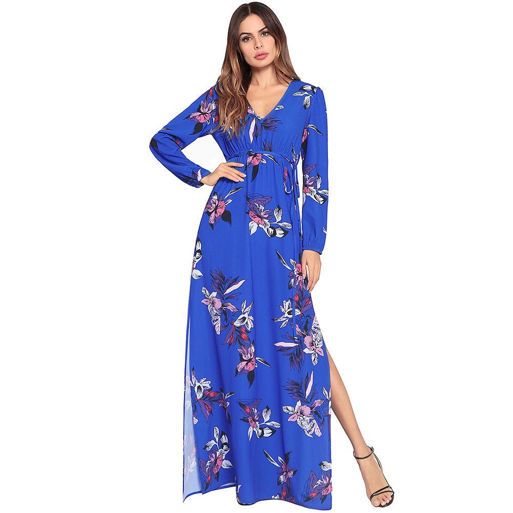 2025 spring and summer new long-sleeved high waist printed dress long skirt