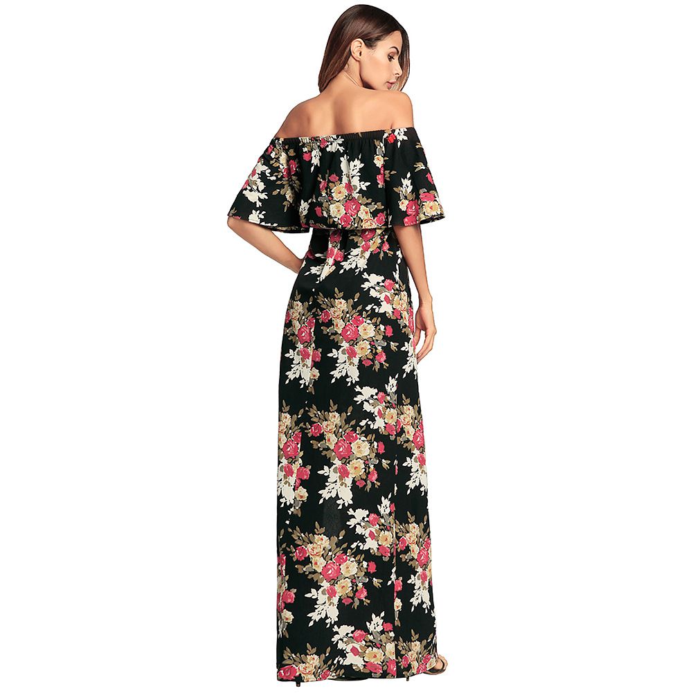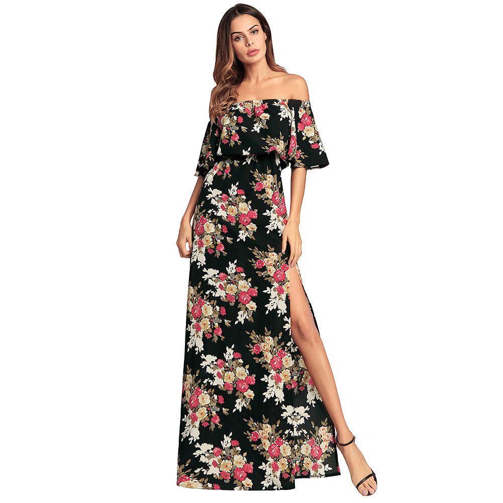 2025 spring and summer new V-neck sexy slit long skirt with printed dress