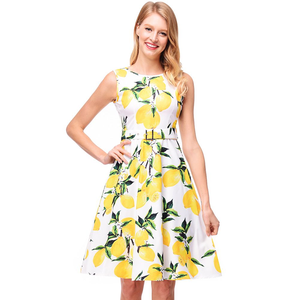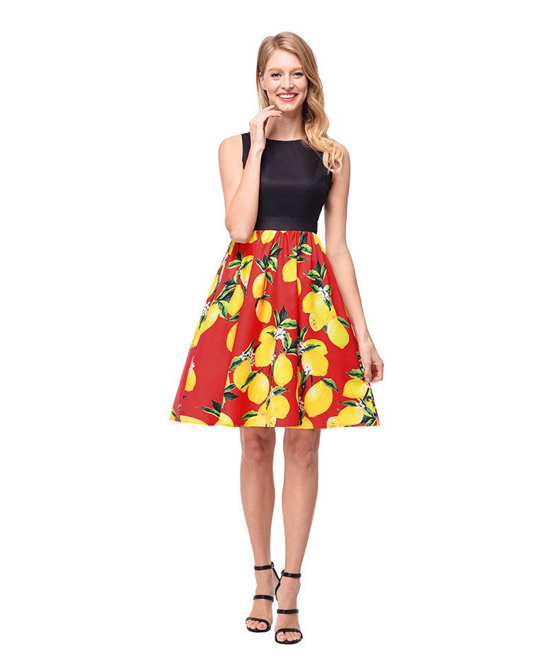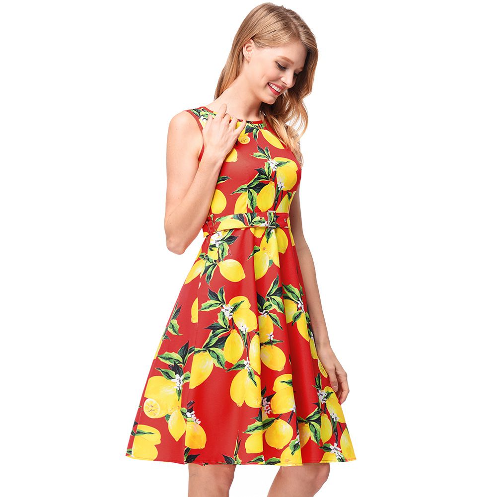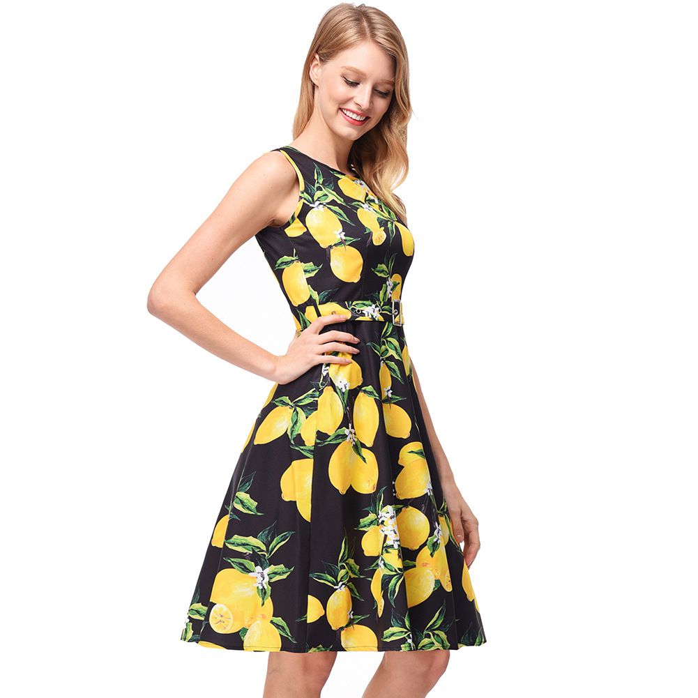 2025 spring and summer new sleeveless dress Hepburn print big swing skirt with belt