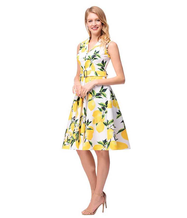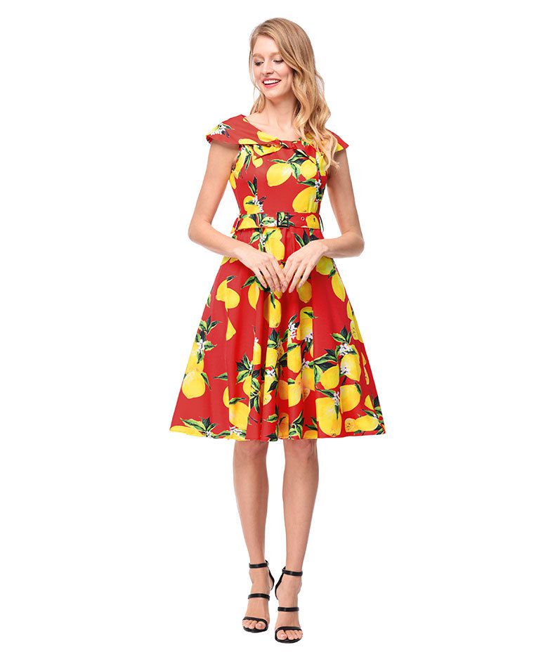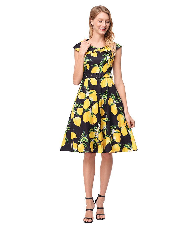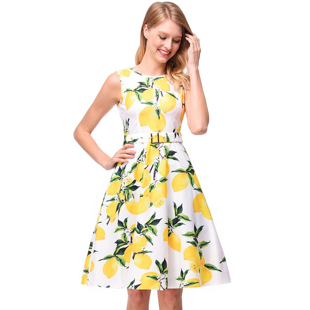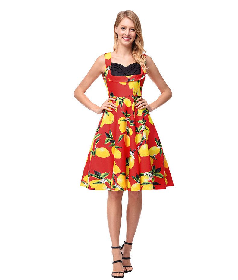 2025 spring and summer new sleeveless dress Hepburn print big swing skirt with belt