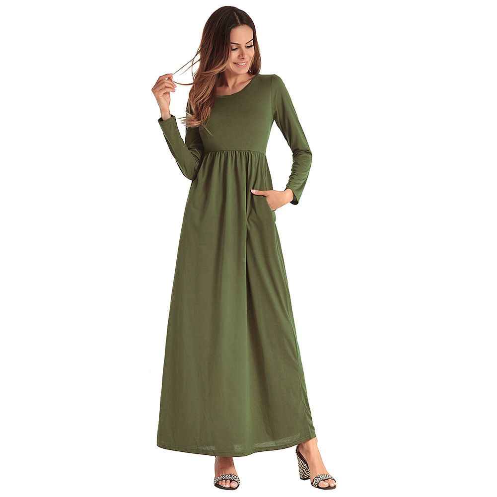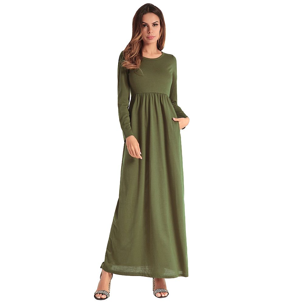 2025 spring and summer new solid color long-sleeved large swing dress sexy long skirt