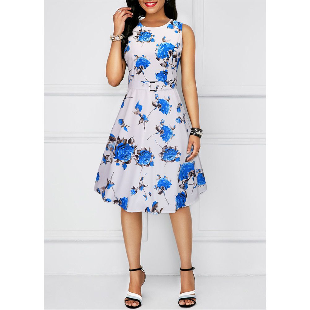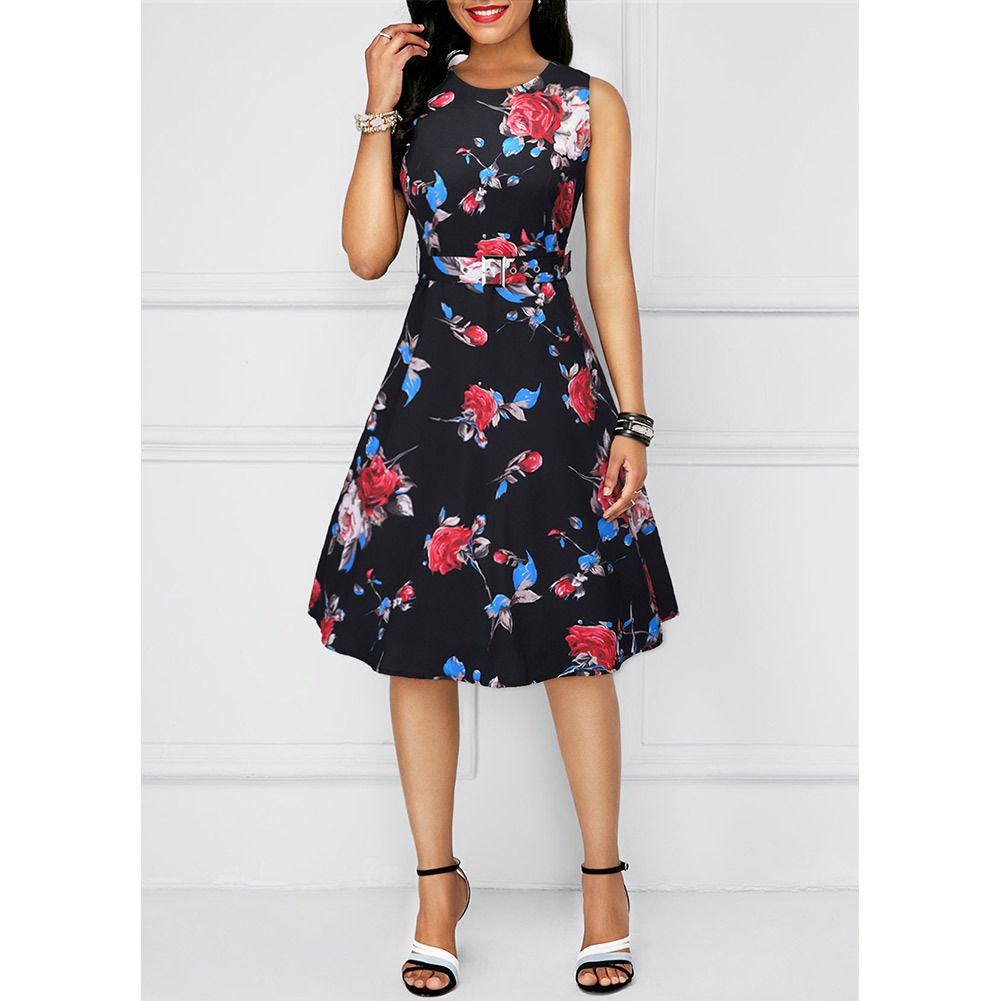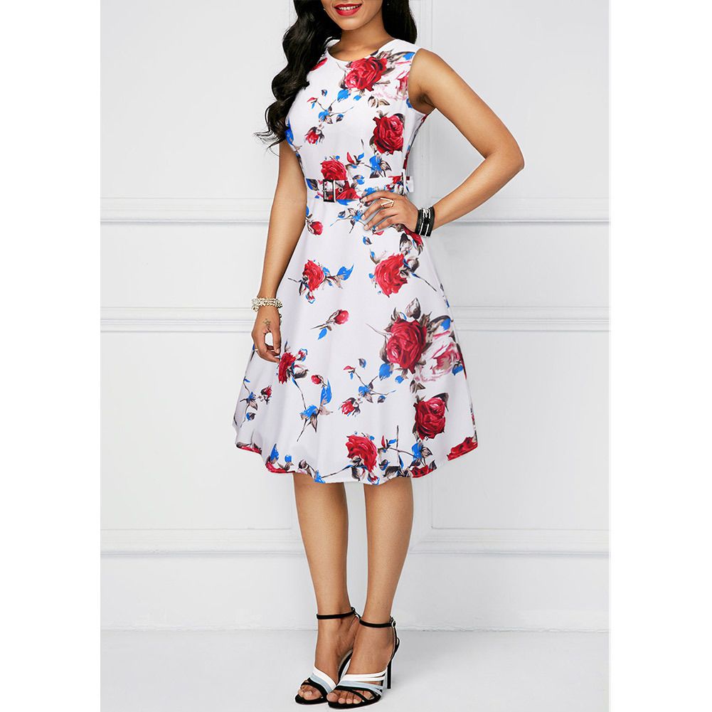 Spring and summer new foreign trade women's printing retro dress Hepburn style 50s skirt