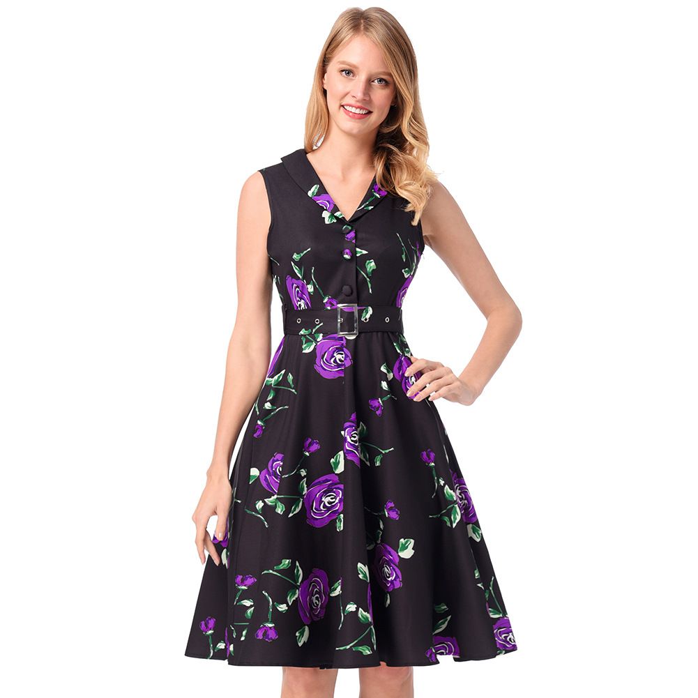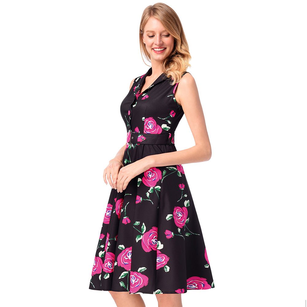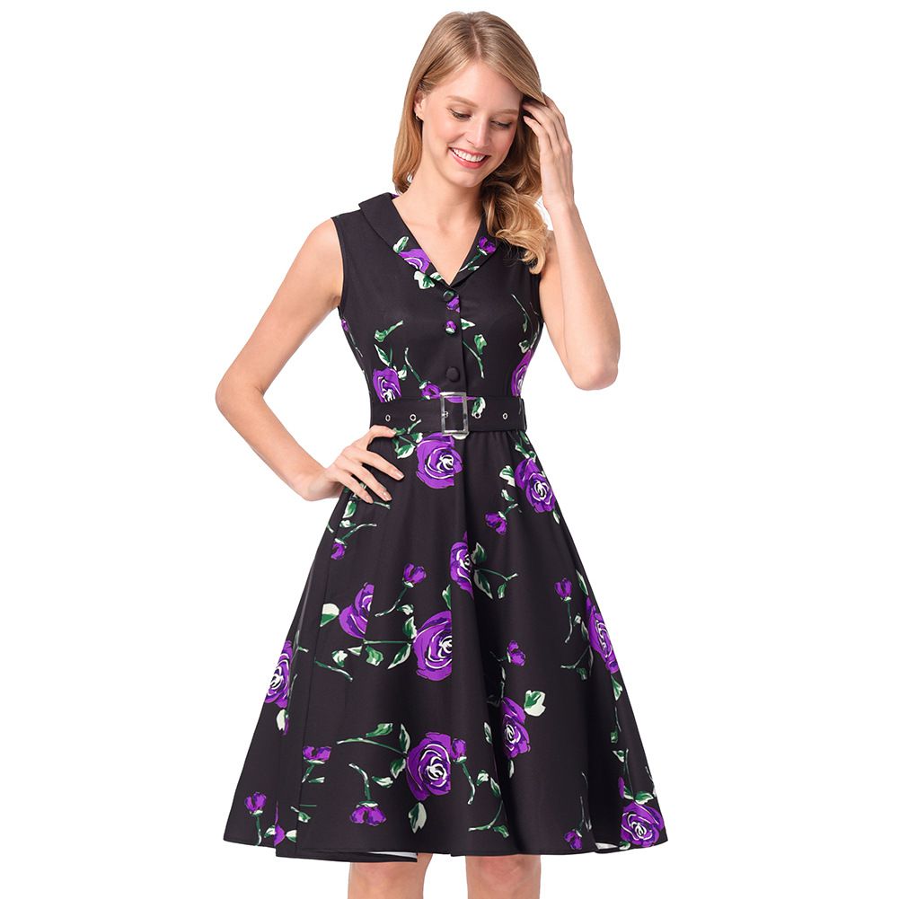 2025 spring and summer retro Hepburn style single-breasted with belt print dress